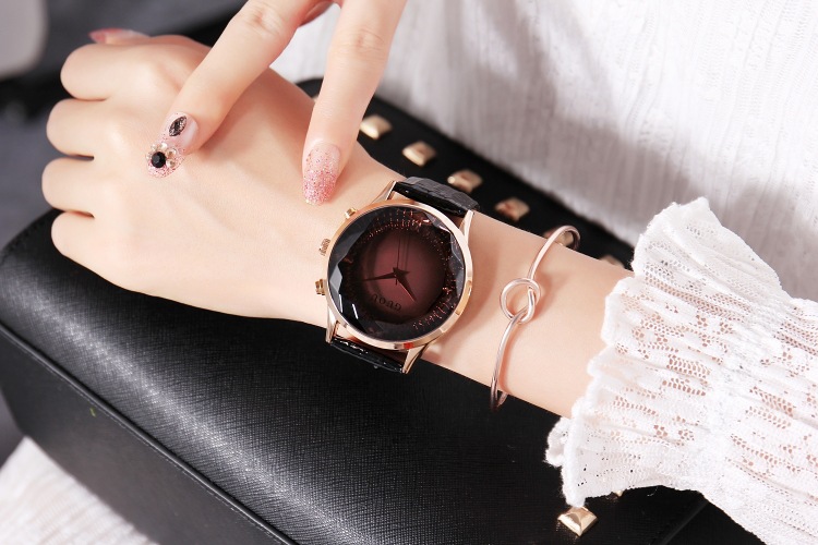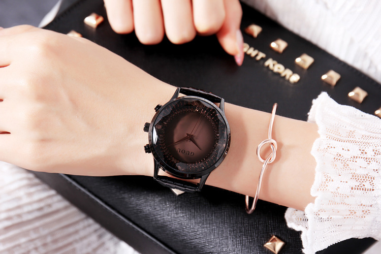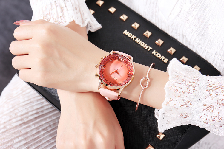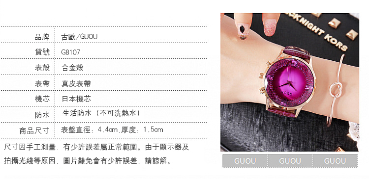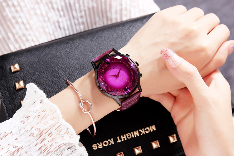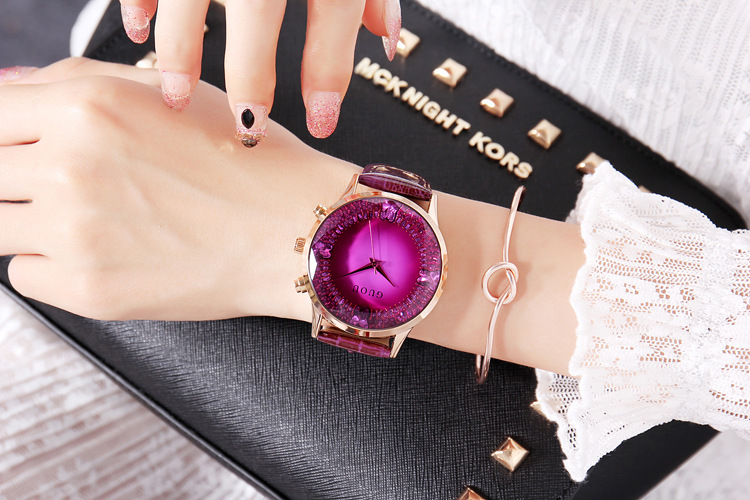 爆款 時來運轉 潮流個性 時尚 紫色皮錶帶 鑲鑽女士手錶Wat55