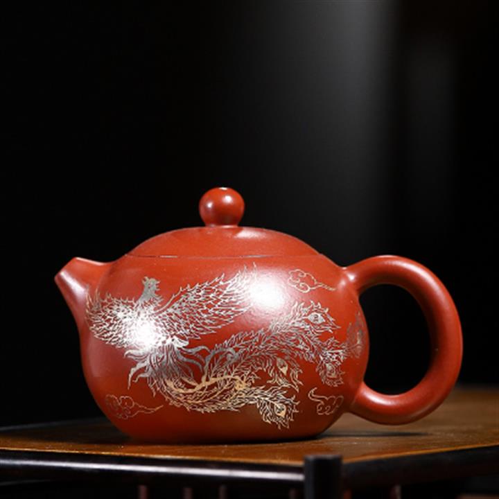 大紅袍還原燒手工半月描銀紫砂壺POT6508