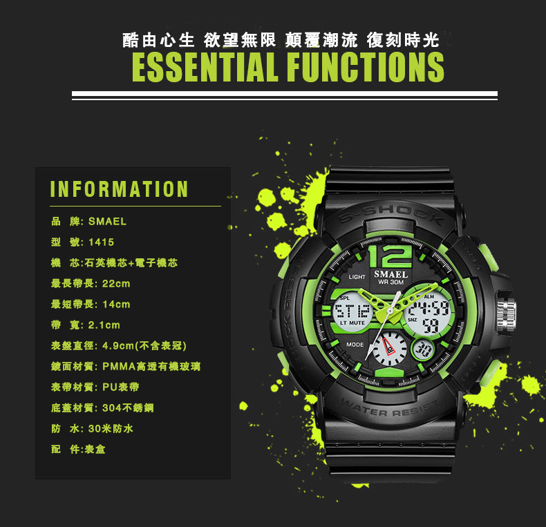 斯麥爾防水運動電子錶 wat309