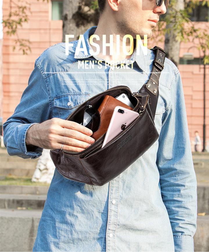 頭層牛皮男士斜跨包胸包腰跨包男包