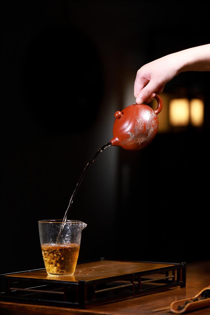 大紅袍還原燒手工半月描銀紫砂壺POT6508