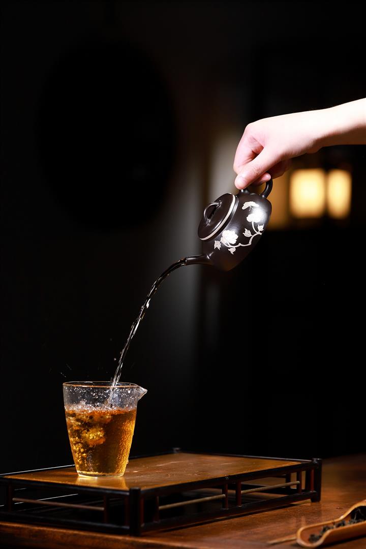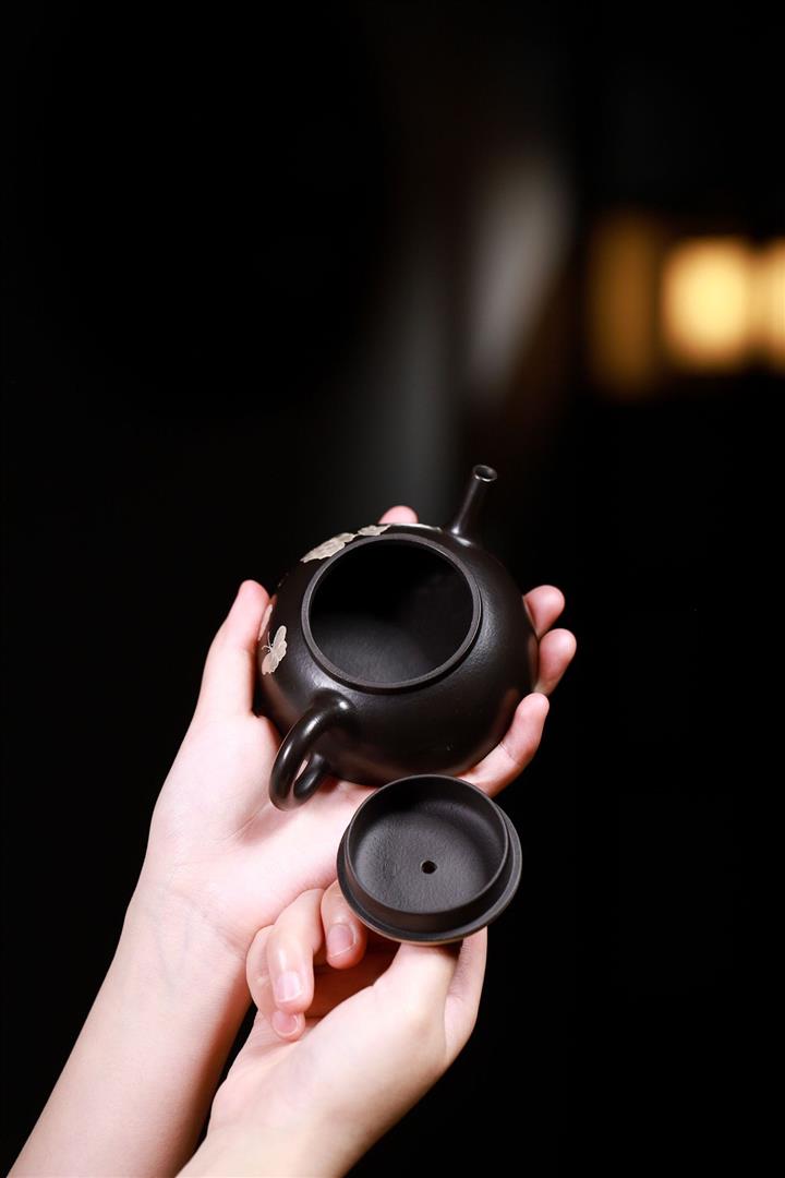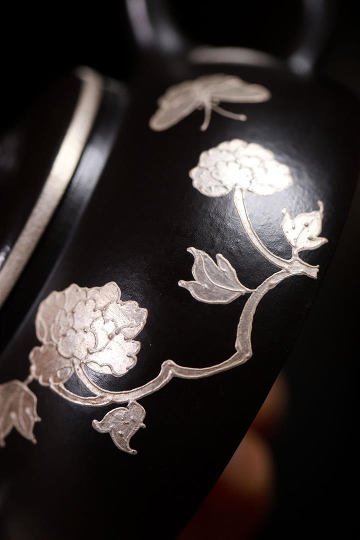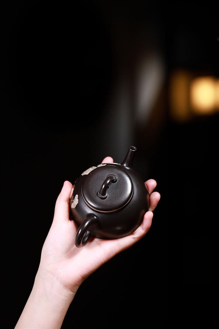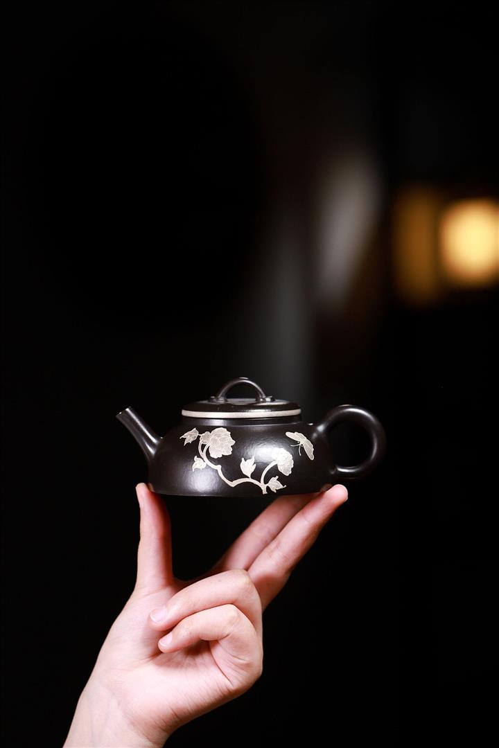 大紅袍還原燒手工半月描銀紫砂壺POT6508