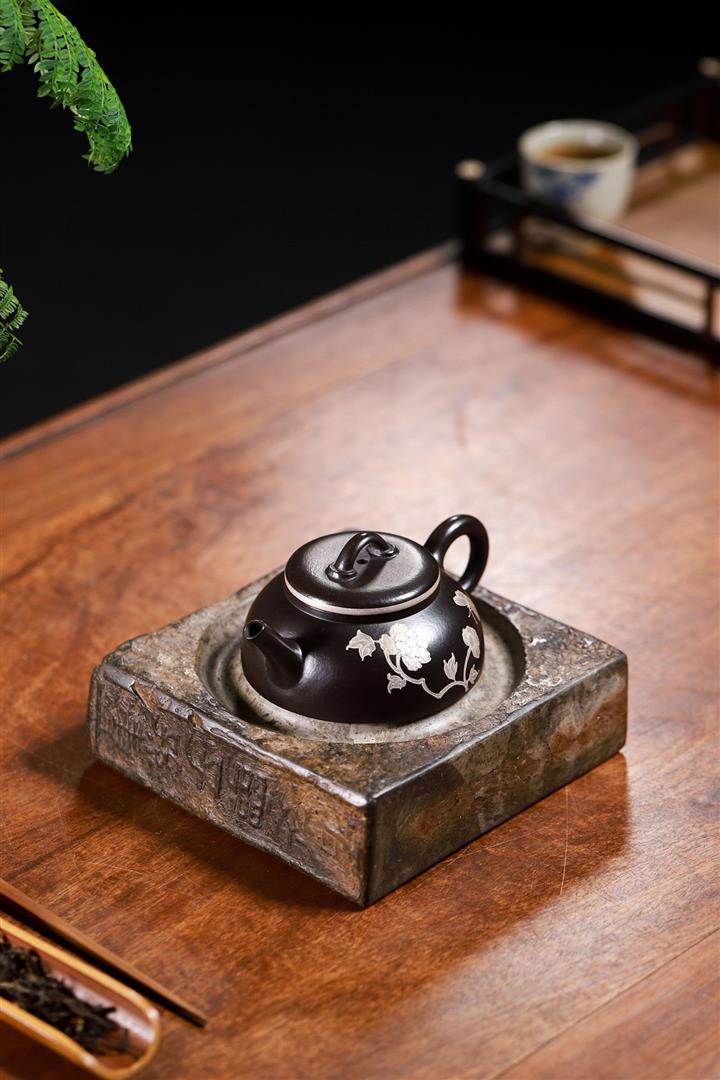 墨綠泥九齡君子蘭幾何周盤茶壺POT6518