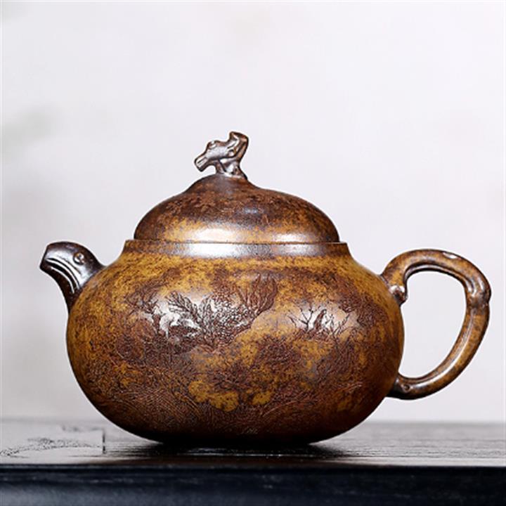 原礦高溫段泥手工刻繪盤龍壺POT6515