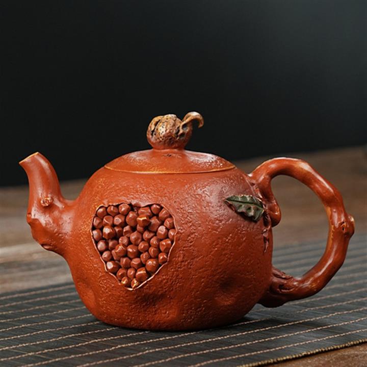 原礦大紅袍手工石榴花多子多福壺POT6517
