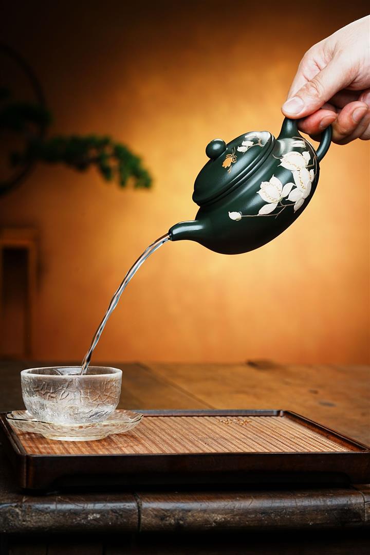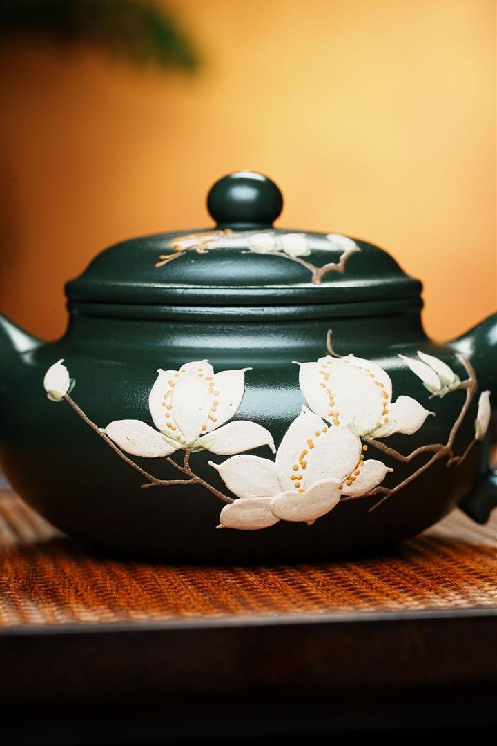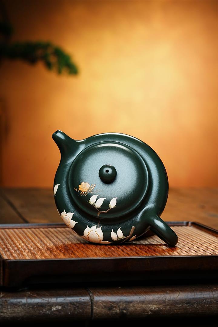 原礦綠泥仿古手繪玉蘭花紫砂壺POT6513