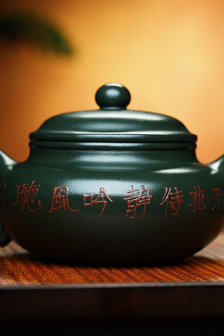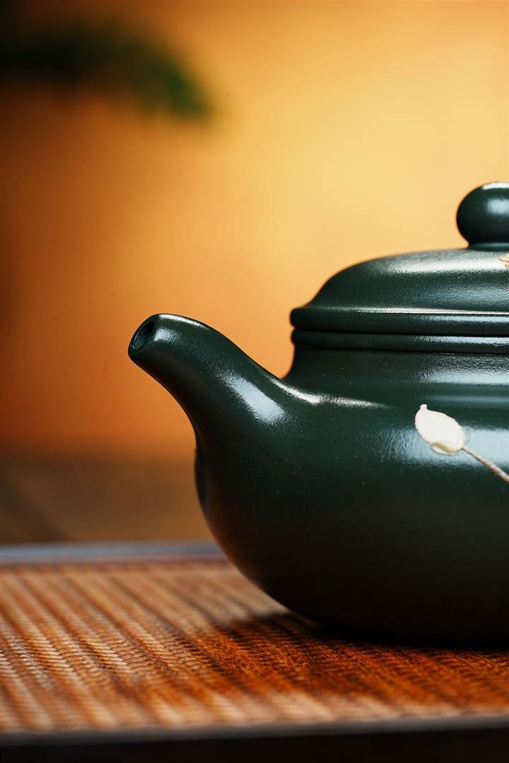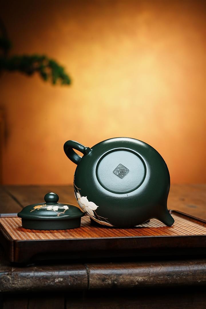 墨綠泥九齡君子蘭幾何周盤茶壺POT6518