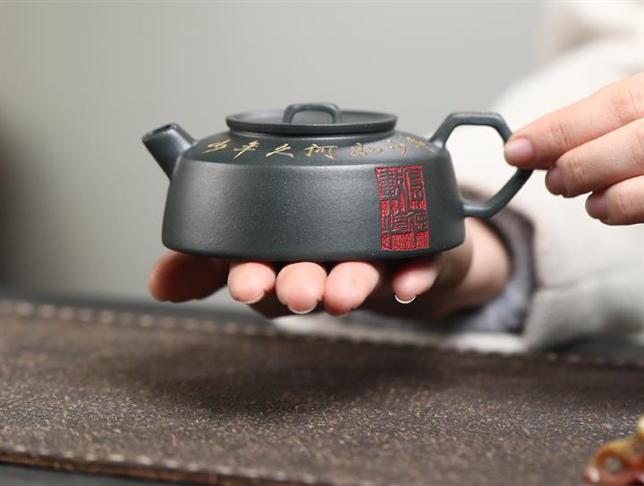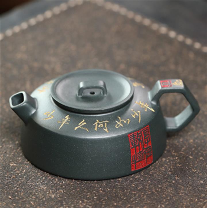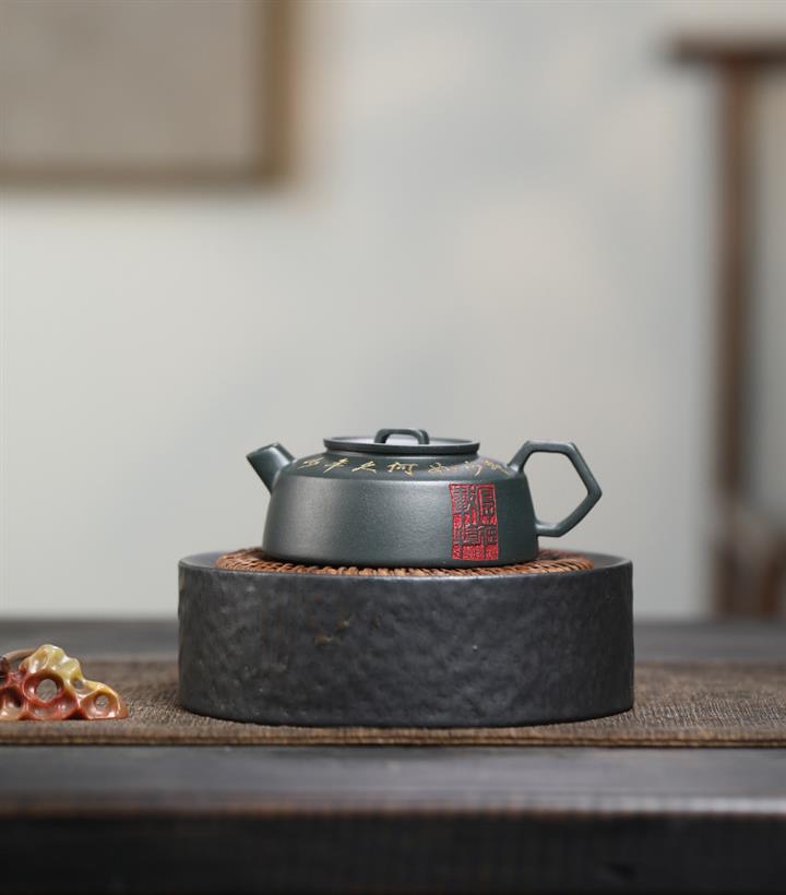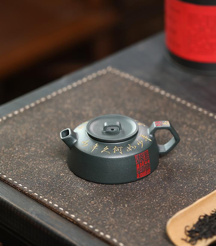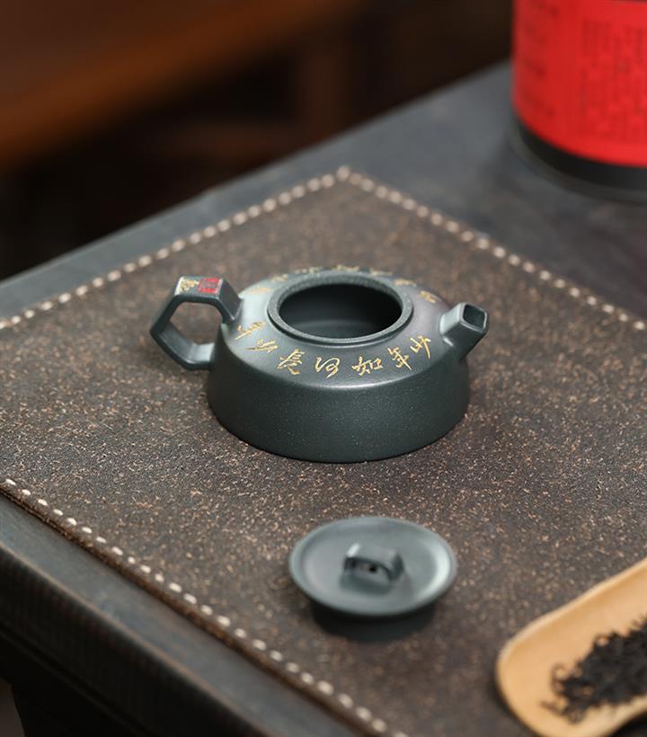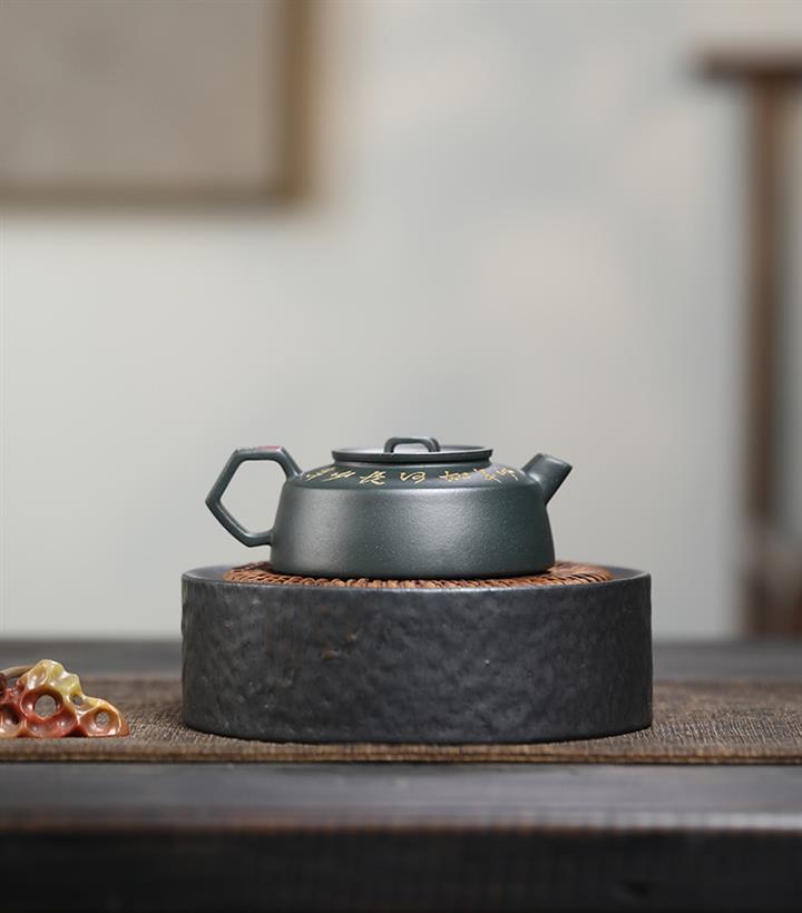 墨綠泥九齡君子蘭幾何周盤茶壺POT6518