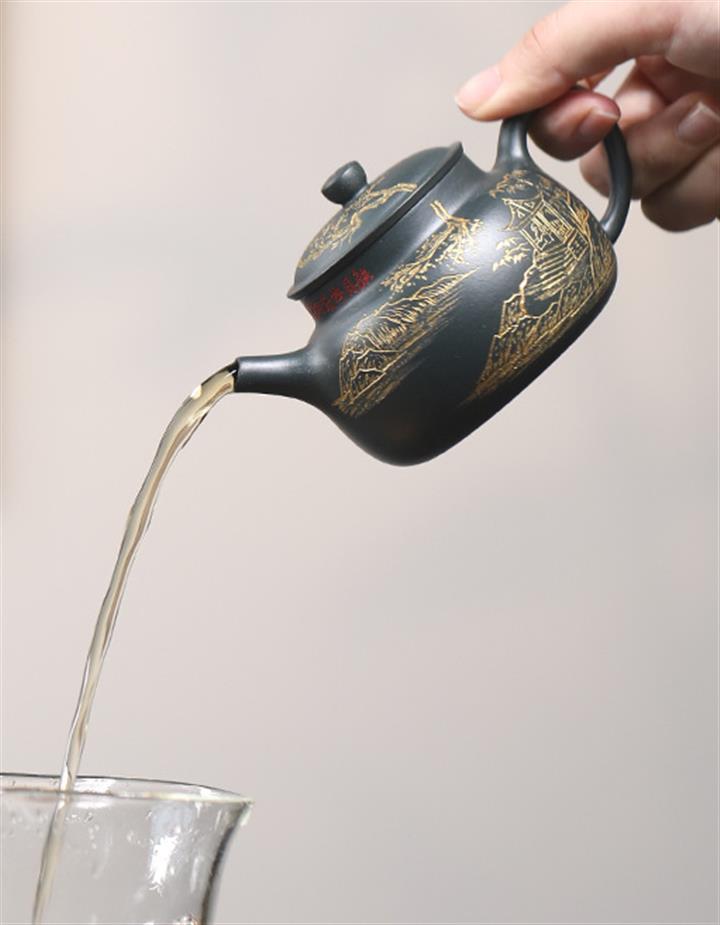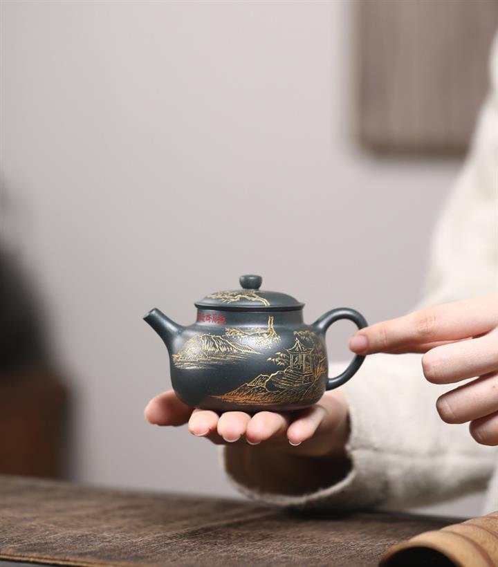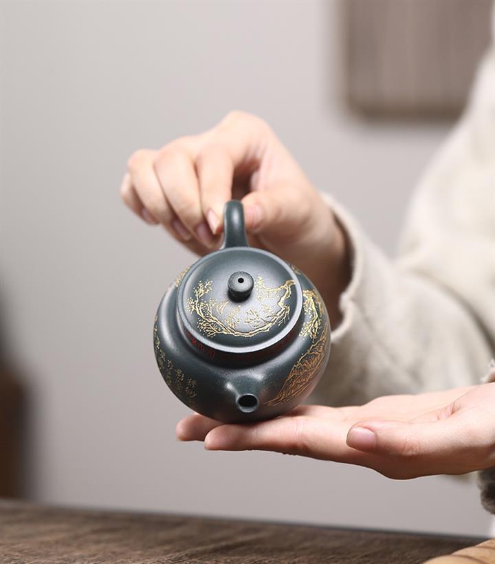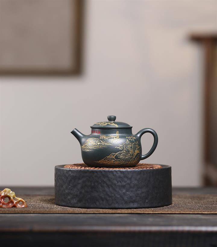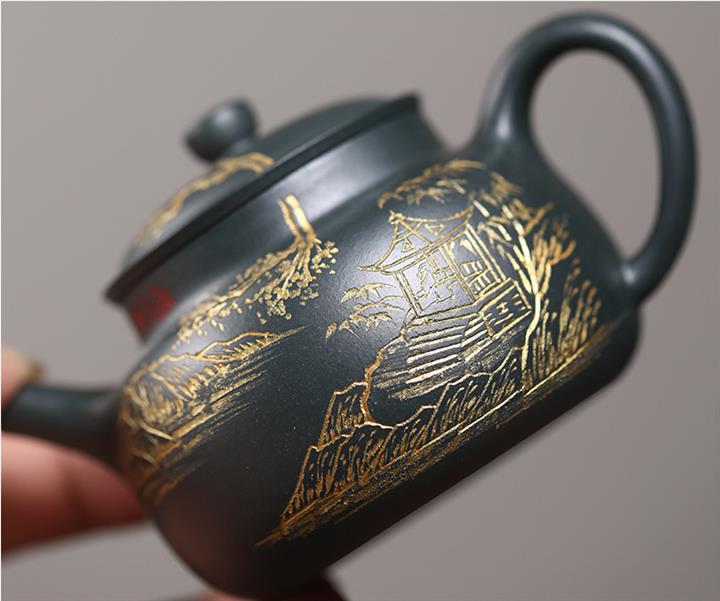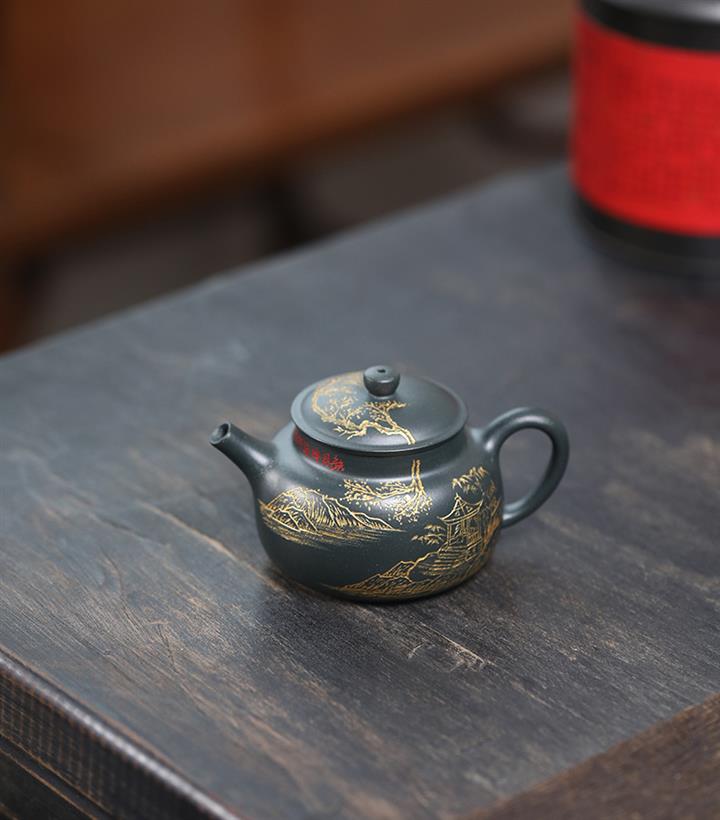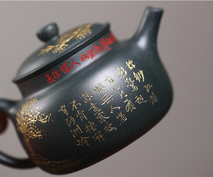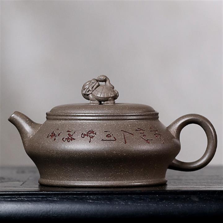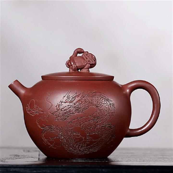 原礦龍血砂手工刻繪龍珠紫砂壺