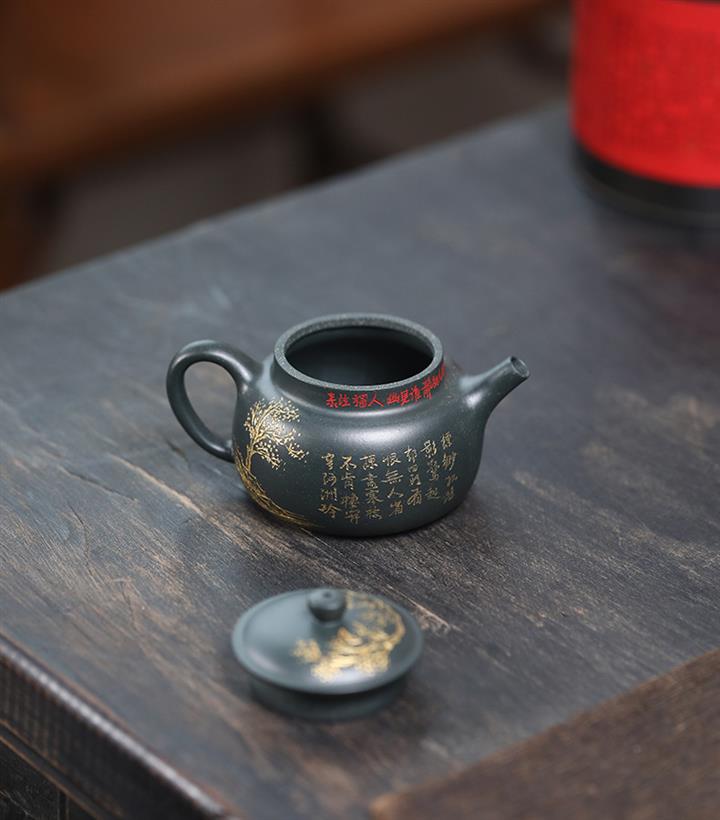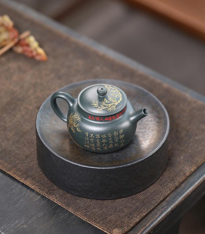 原礦九齡君子蘭墨綠泥紫砂壺POT6519