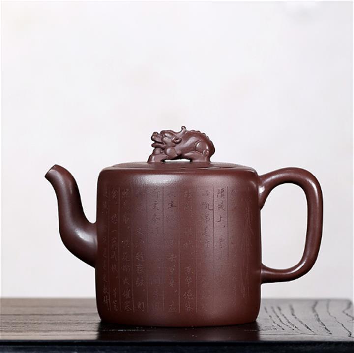 原礦紫泥手工刻繪瑞獸紫砂壺POT6522