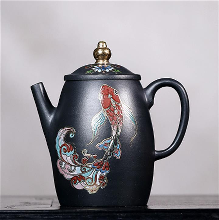 原礦墨綠泥手工彩繪錦鯉紫砂壺POT6524