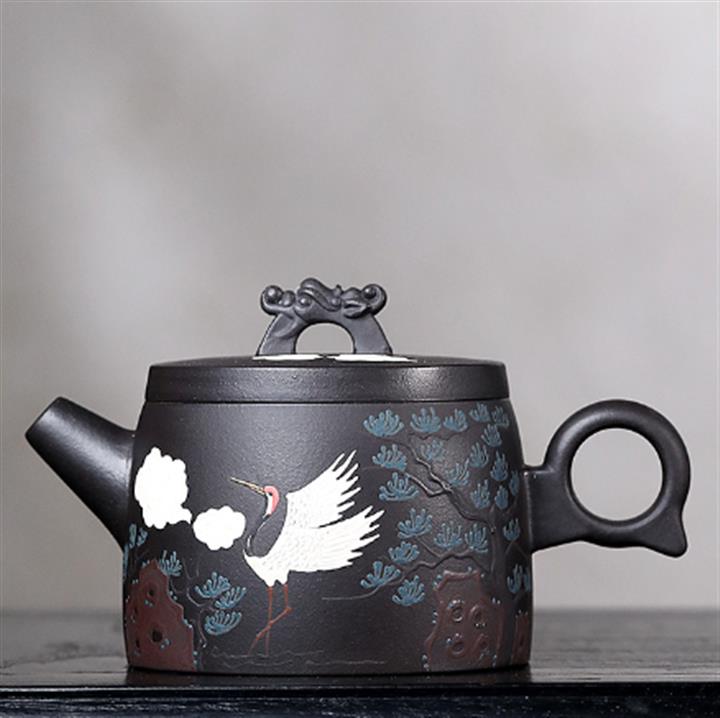 原礦黑金剛手工松鶴延年紫砂壺POT6528