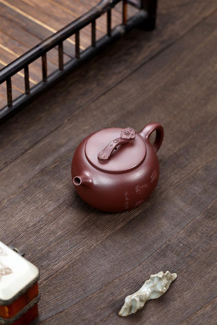 原礦龍血砂手工刻繪無欲則剛紫砂壺POT6530
