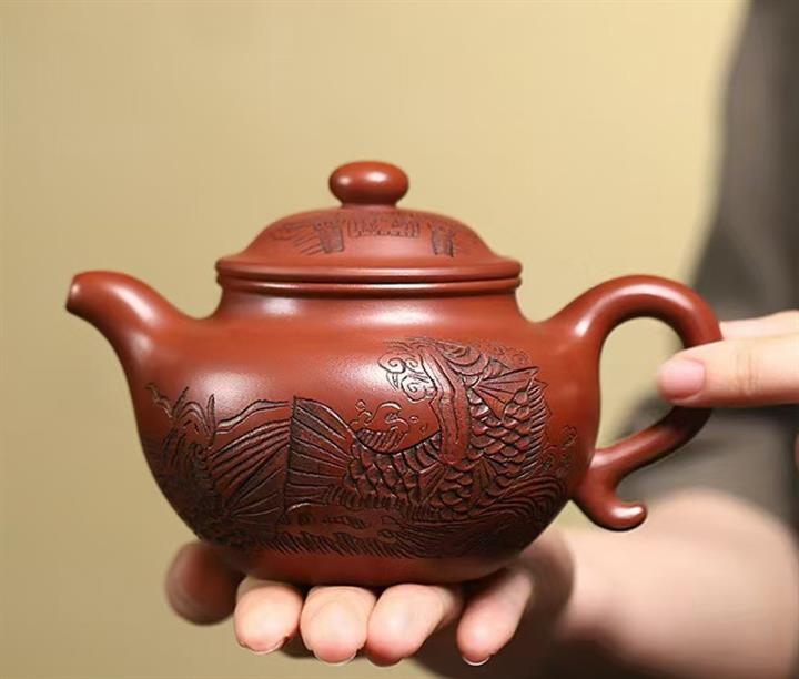 原礦龍血砂手工年年有魚紫砂壺POT6541