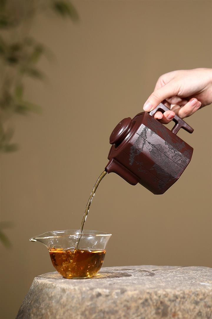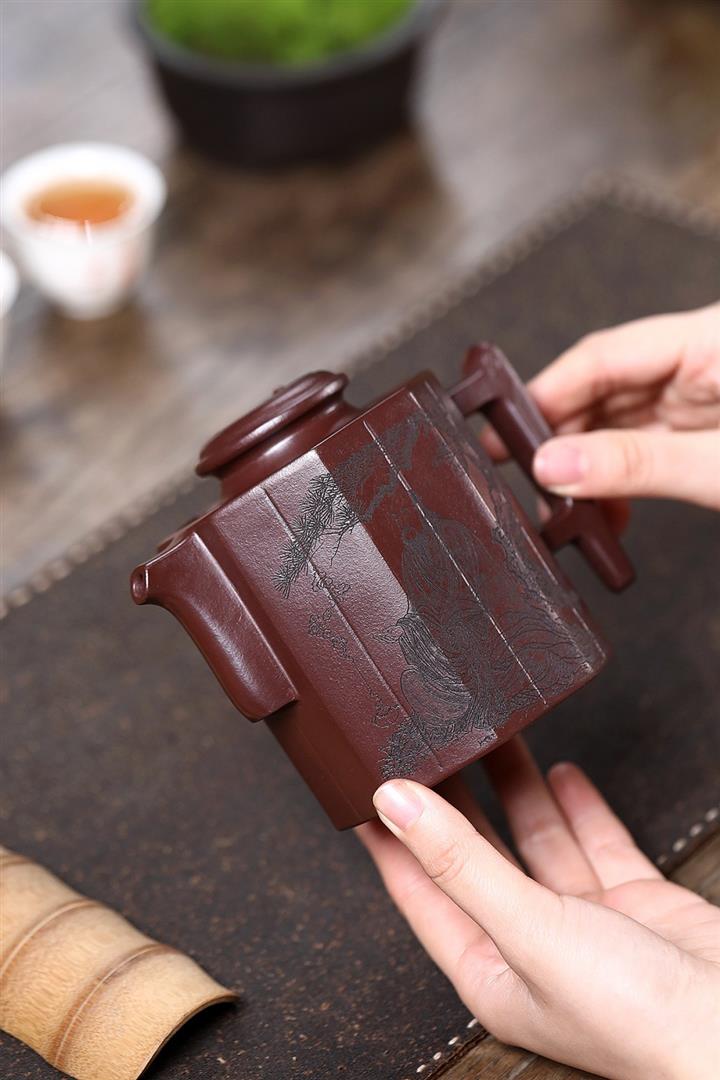 原礦老紫泥名家手工太極竹簡壺POT6550