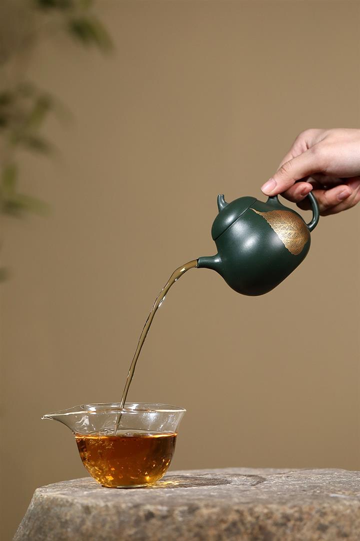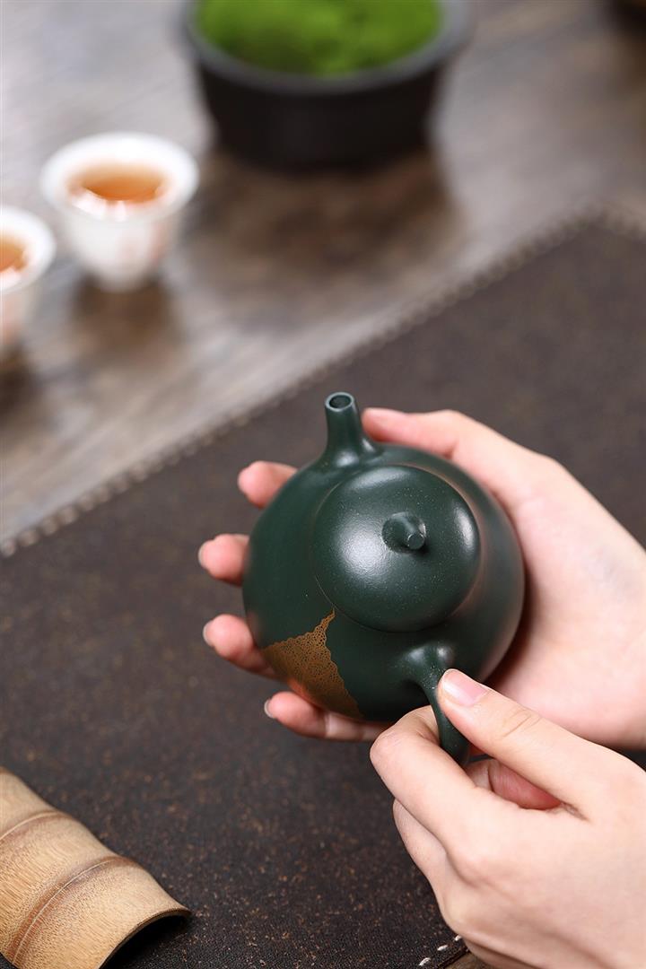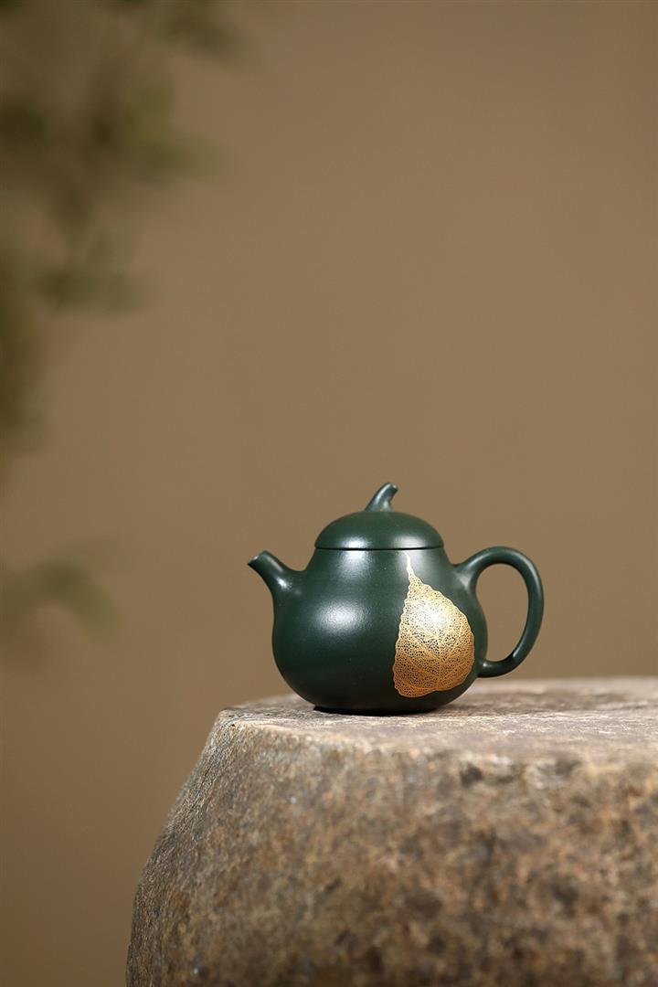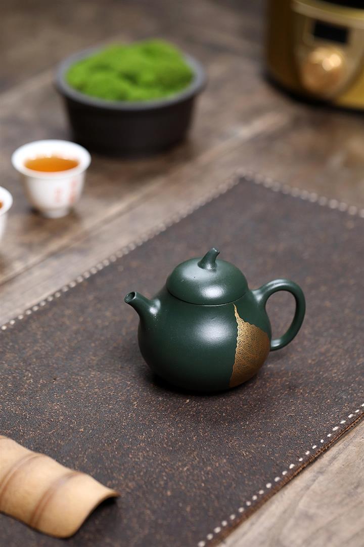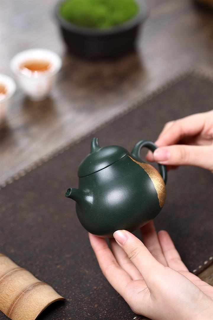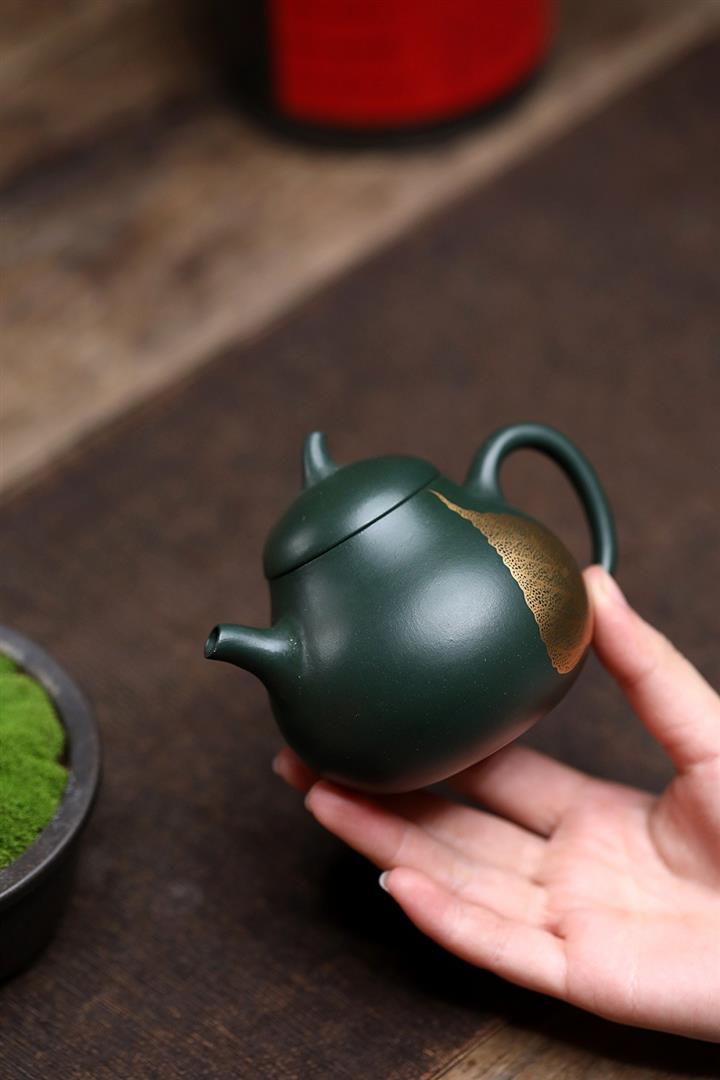 原礦墨綠泥手工金葉茄瓜茶壺POT6552