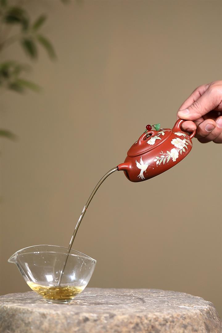紫砂使用越久,壺身色澤越發光亮照人,氣韻溫雅。紫砂壺長久使用器身會因撫摸擦拭,變得越發溫潤光澤!