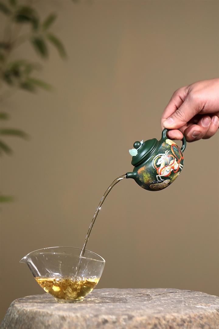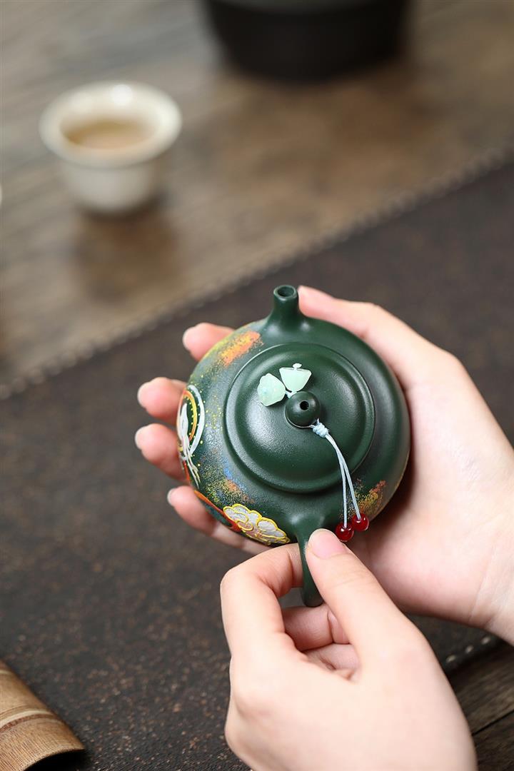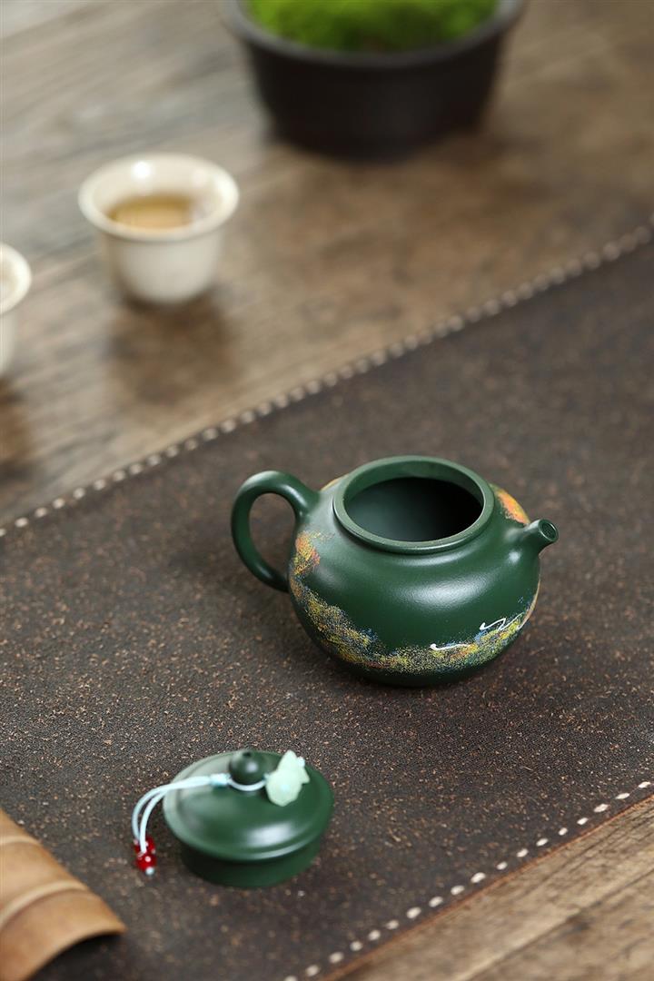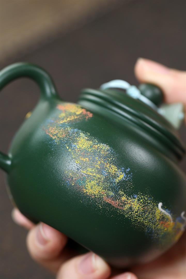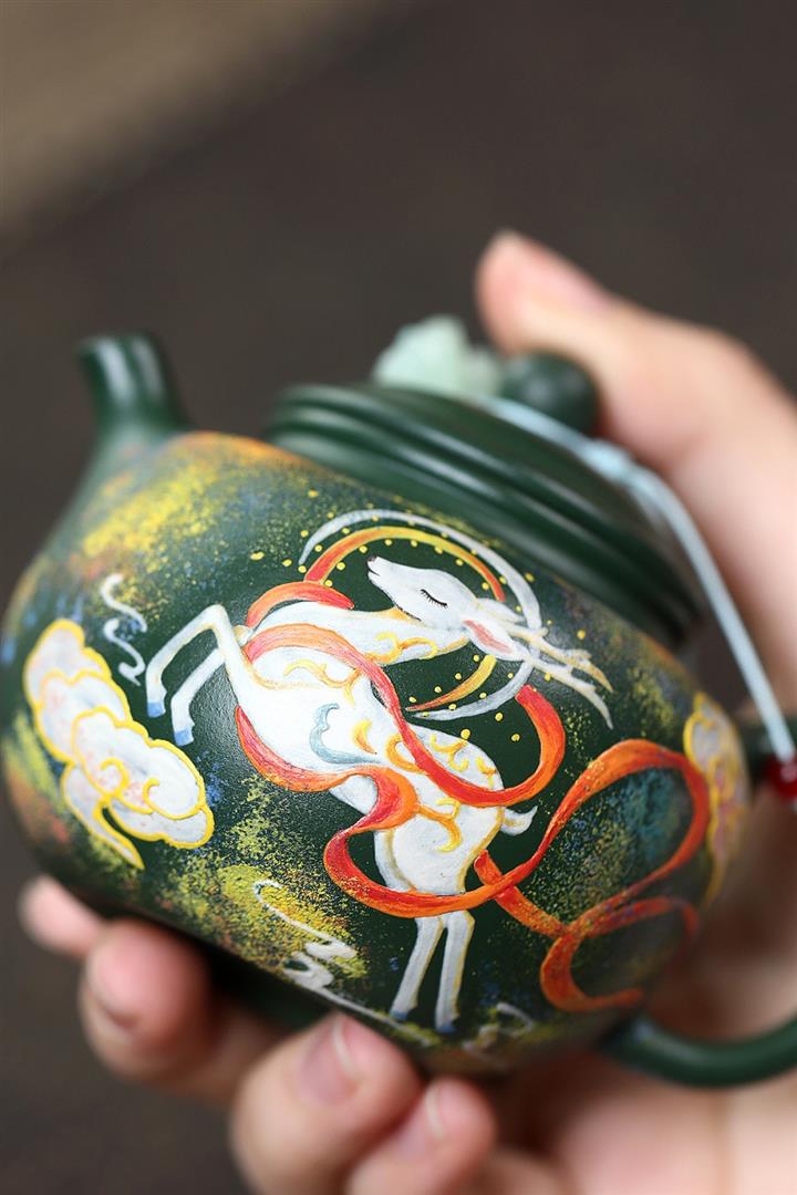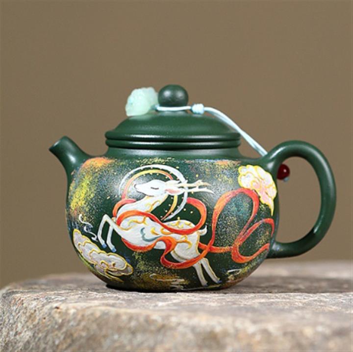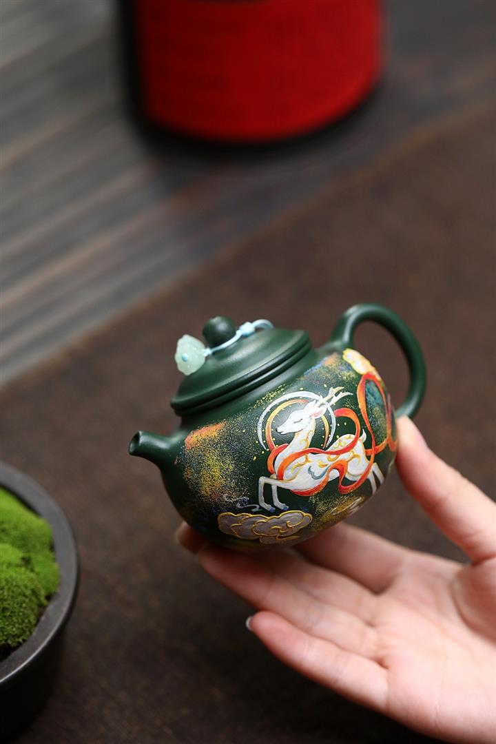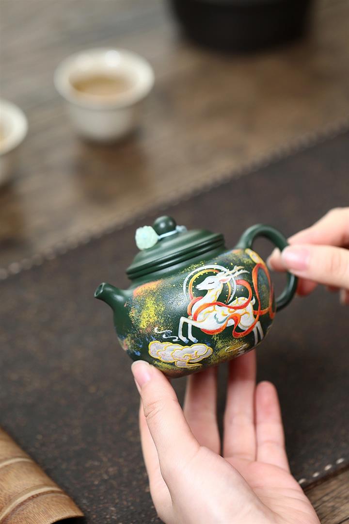 原礦綠泥九手工色鹿匏尊茶壺POT6556