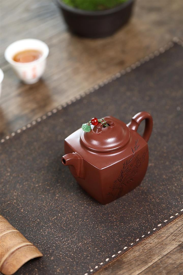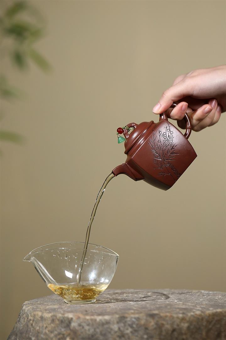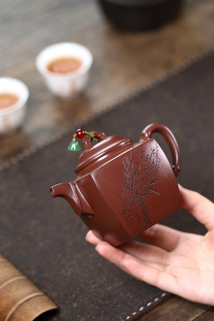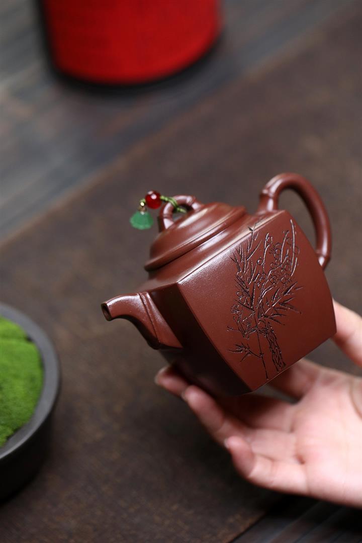 紫砂使用越久,壺身色澤越發光亮照人,氣韻溫雅。紫砂壺長久使用器身會因撫摸擦拭,變得越發溫潤光澤!