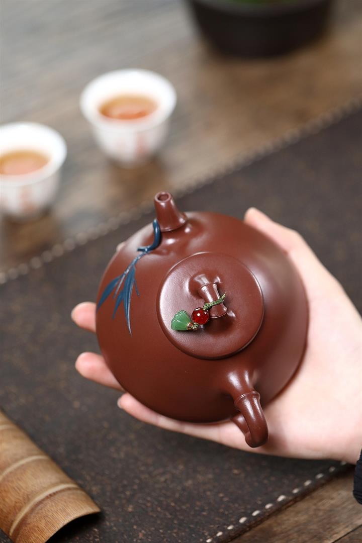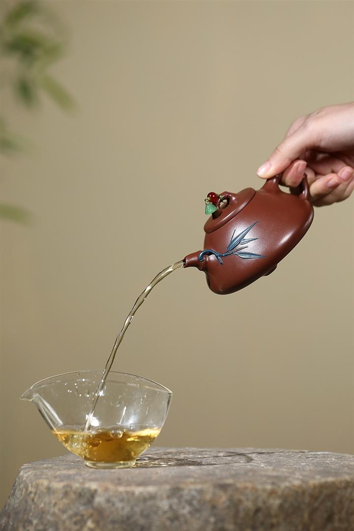 紫砂使用越久,壺身色澤越發光亮照人,氣韻溫雅。紫砂壺長久使用器身會因撫摸擦拭,變得越發溫潤光澤!