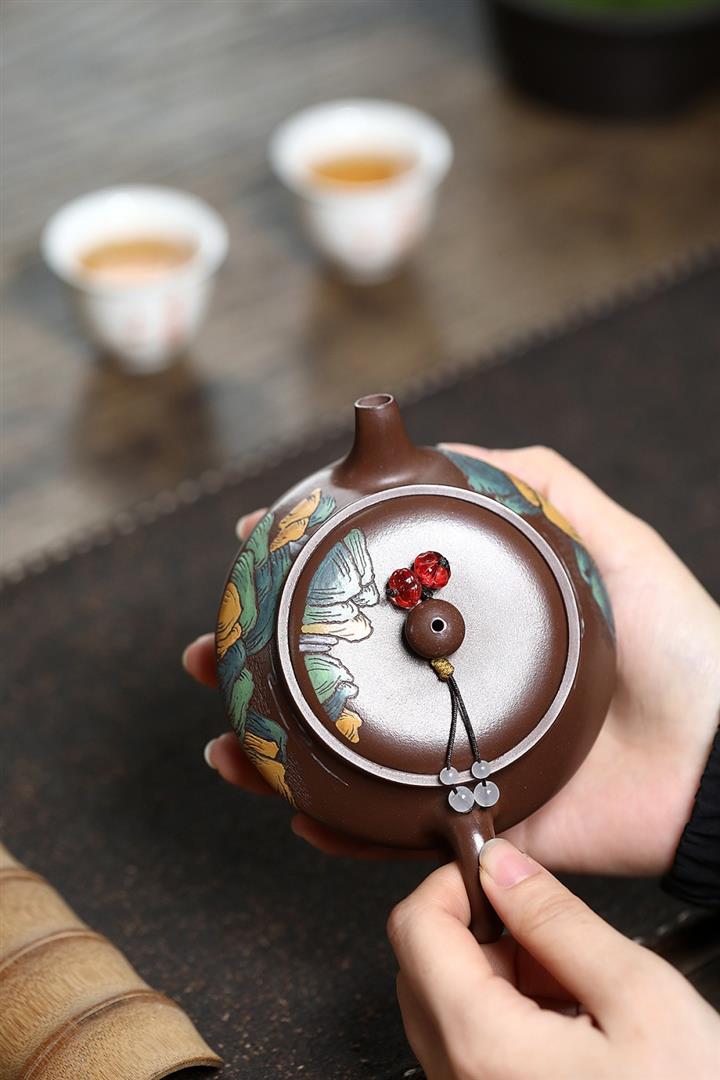 原礦老紫泥手工彩繪曼殊茶壺POT6565