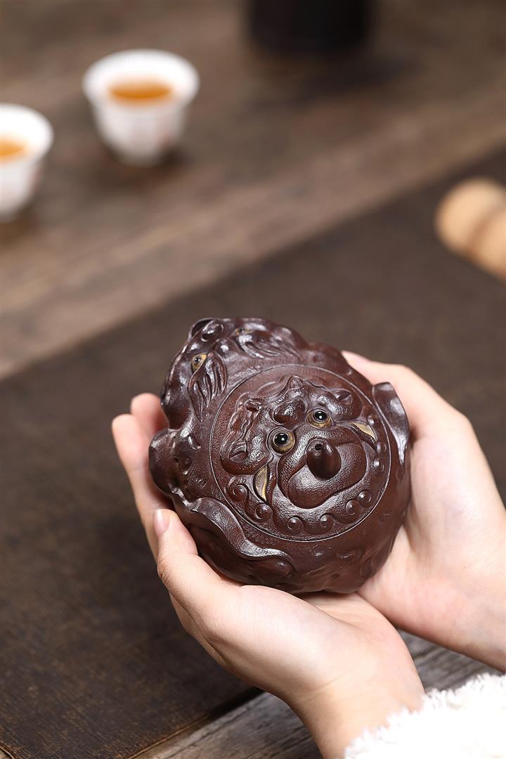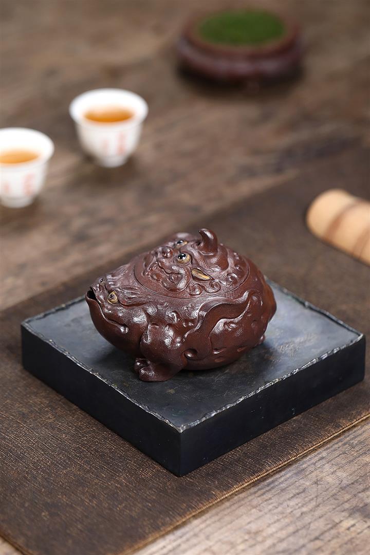 原礦紫泥手工製作金蟾手抓壺POT6571