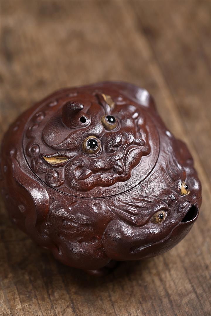 【品名】金蟾手抓壺(附:壺繩 高檔禮盒 作者收藏證書 茶巾)