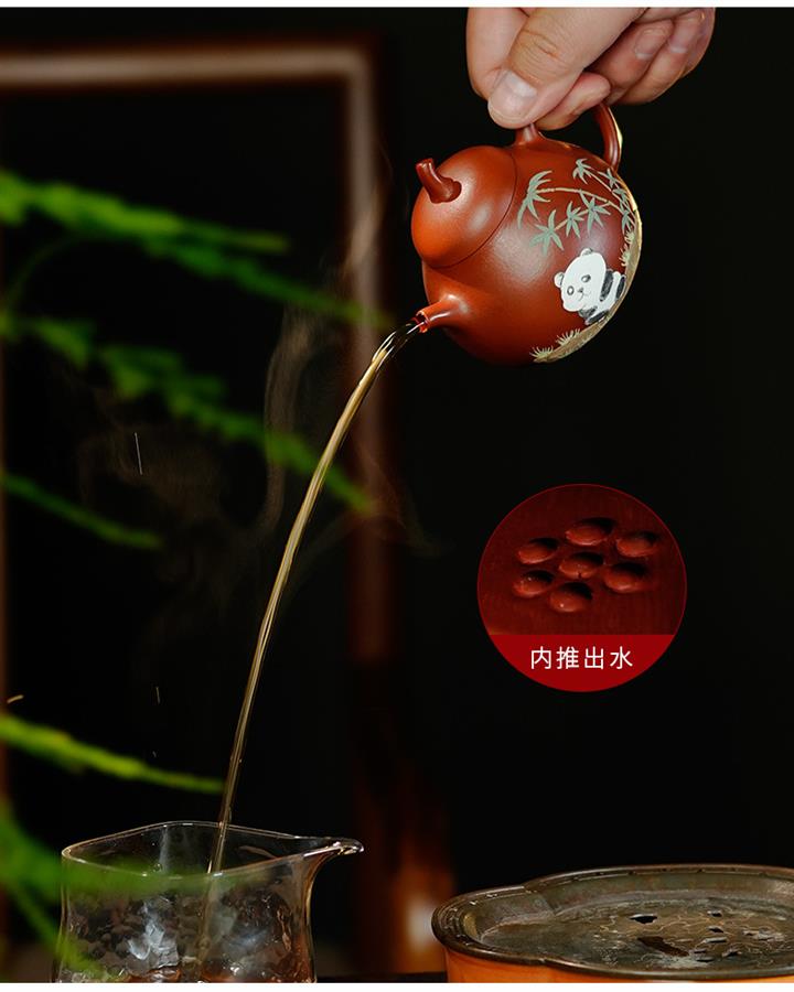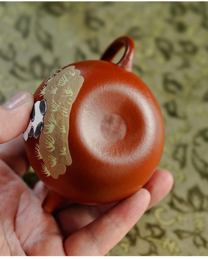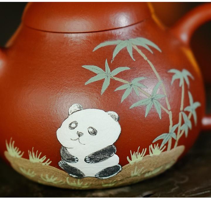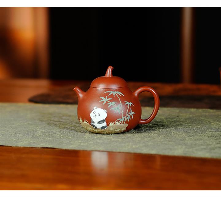 原礦朱泥純手工彩繪熊貓茄瓜壺POT6577
