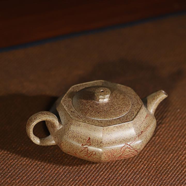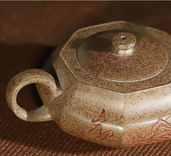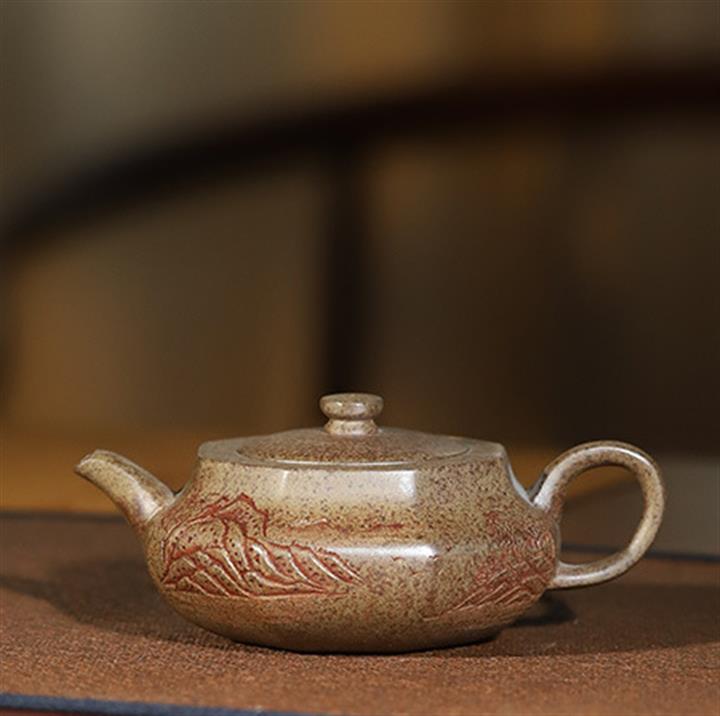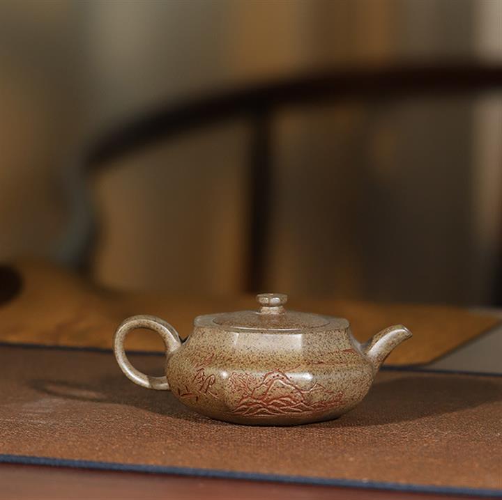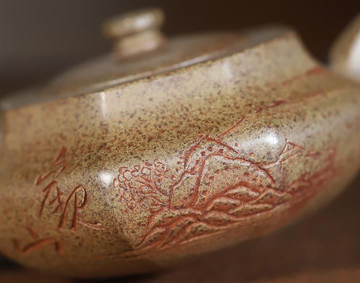 原礦雲霧沈香柴燒純手工刻繪六方漢雲壺POT6580