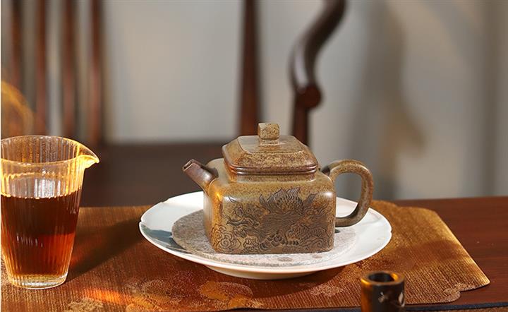 原礦雲霧沈香柴燒純手工刻繪四方德鐘壺POT6582