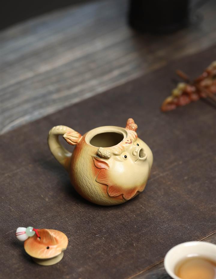 高溫沈香泥匠心手製大牛蓋紫砂壺POT6593