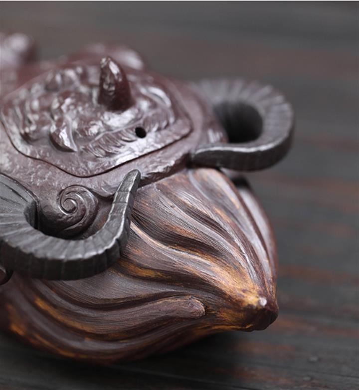 高溫沈香泥匠心手製牛蓋大石瓢壺POT6594