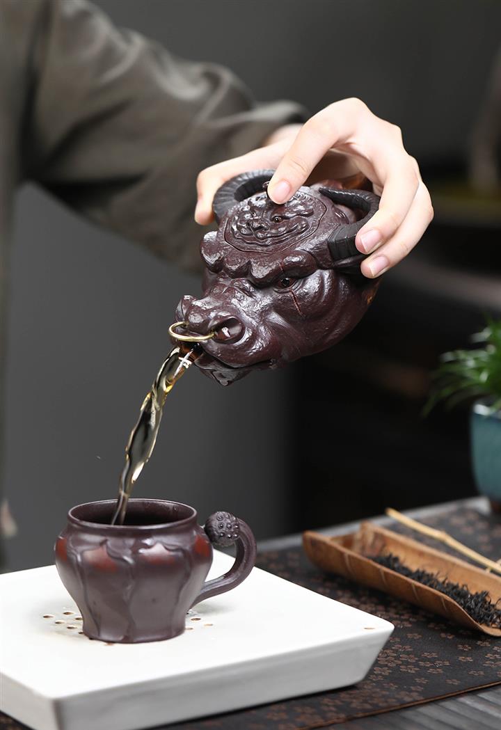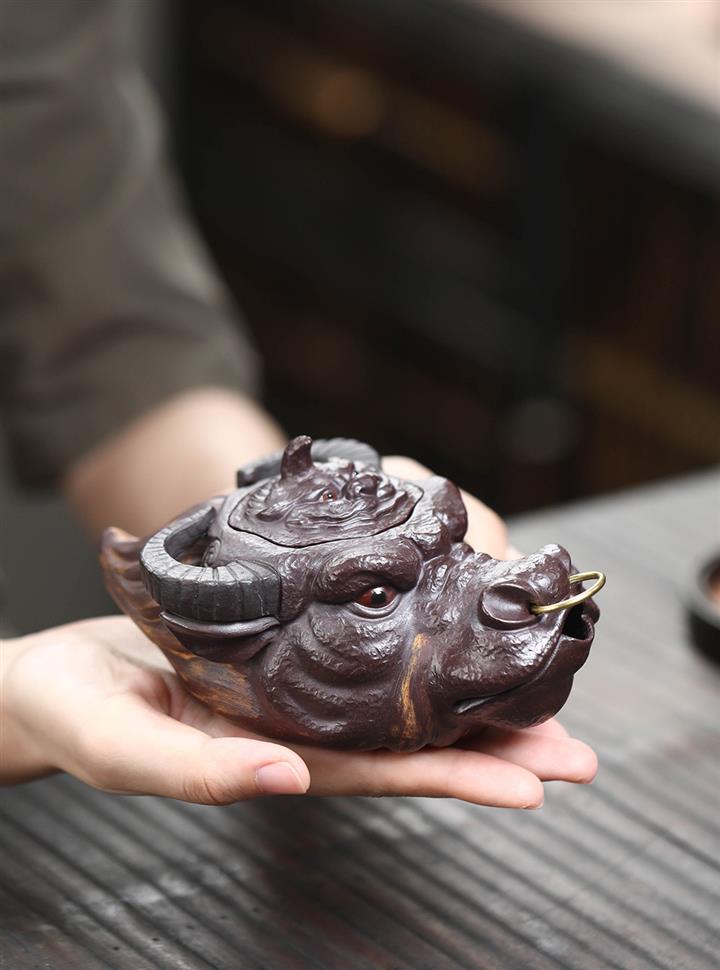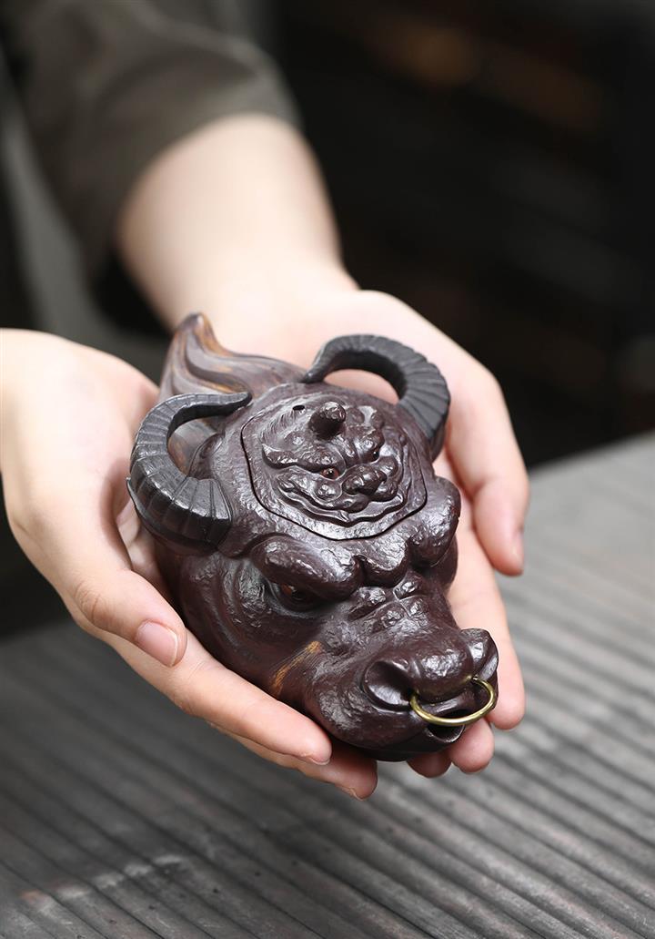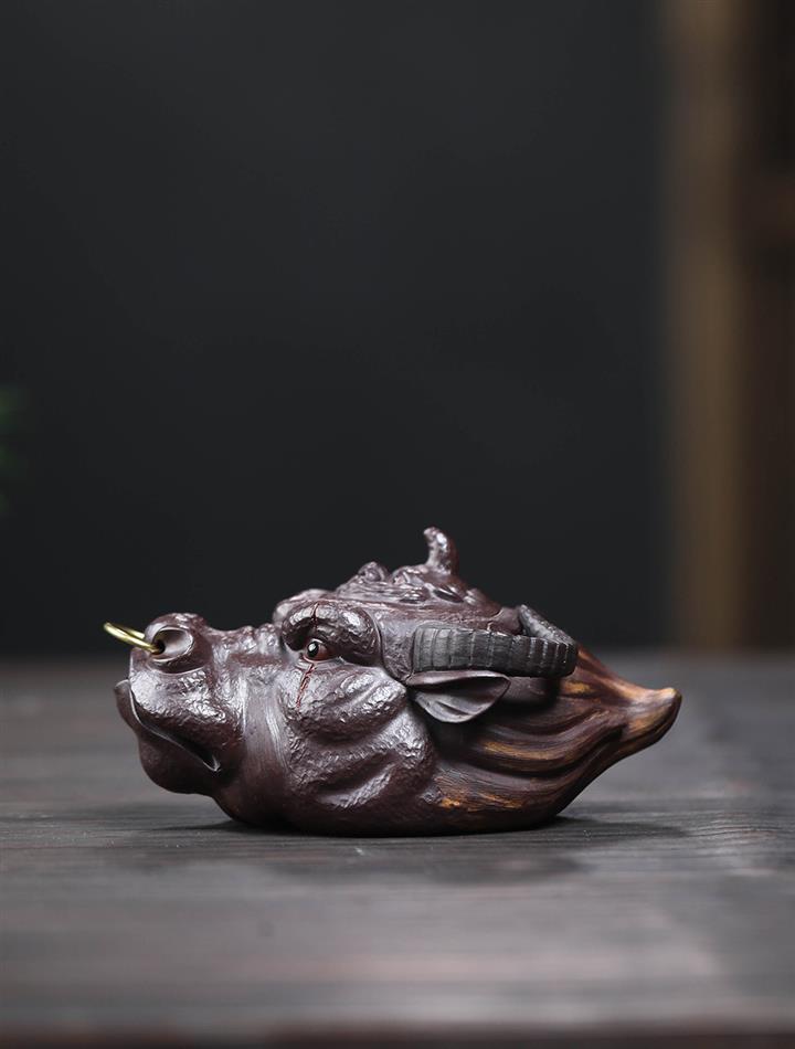 高溫沈香泥匠心手製大牛蓋紫砂壺POT6593