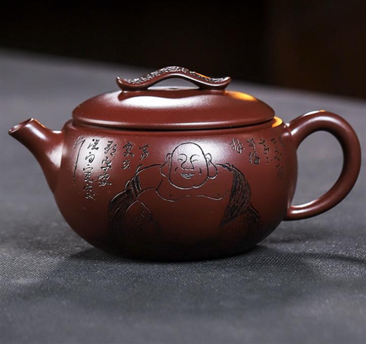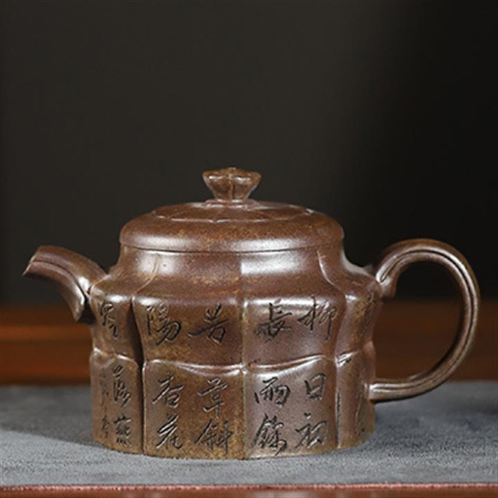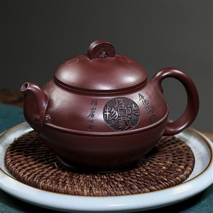 原礦老紫泥純手工刻繪乾坤茶壺POT6599
