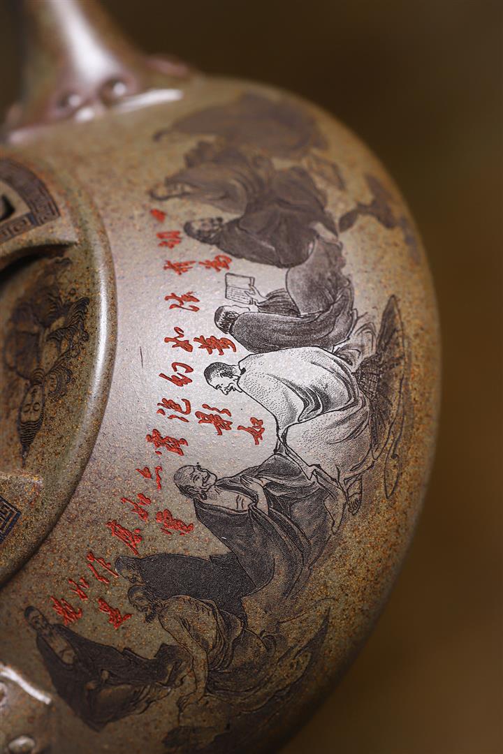 原礦老紫泥純手工刻繪乾坤茶壺POT6599