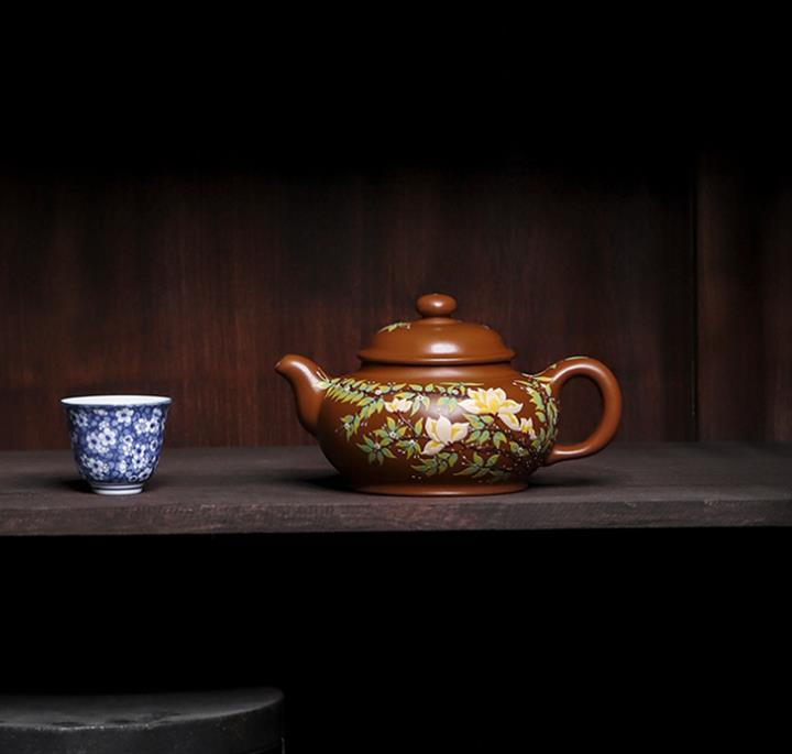 原礦降坡泥無塵手工花鳥茶壺POT6605