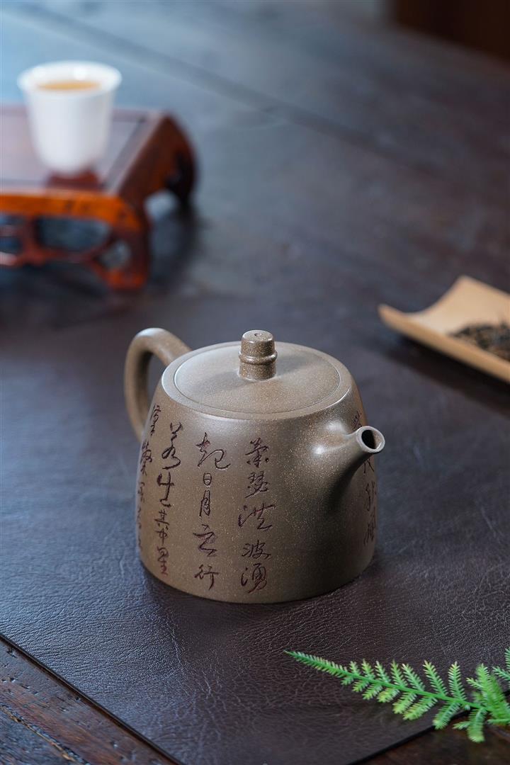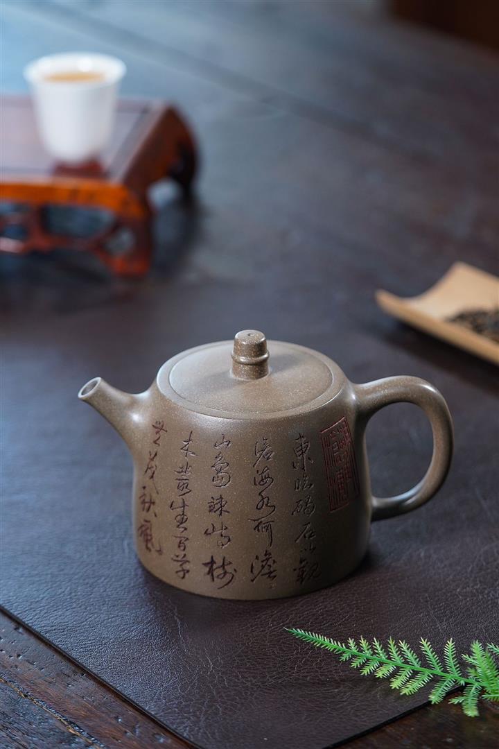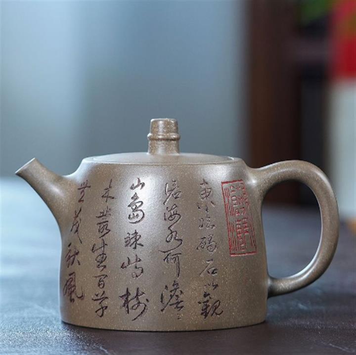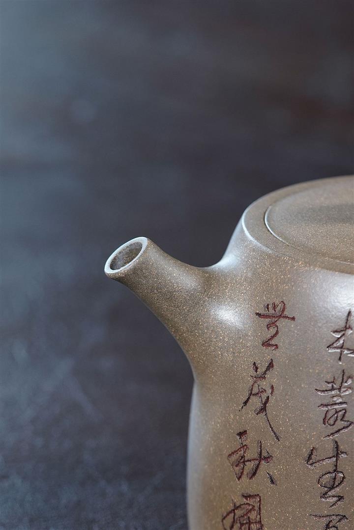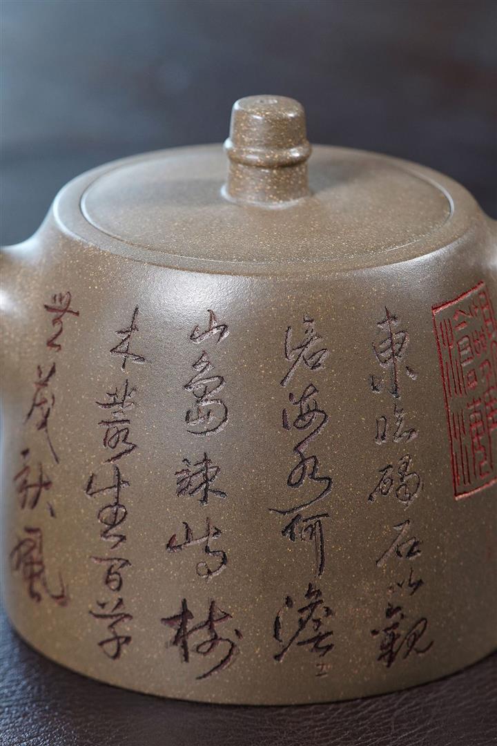 原礦龍骨金砂雙刀刻字炮嘴漢瓦茶壺POT6617