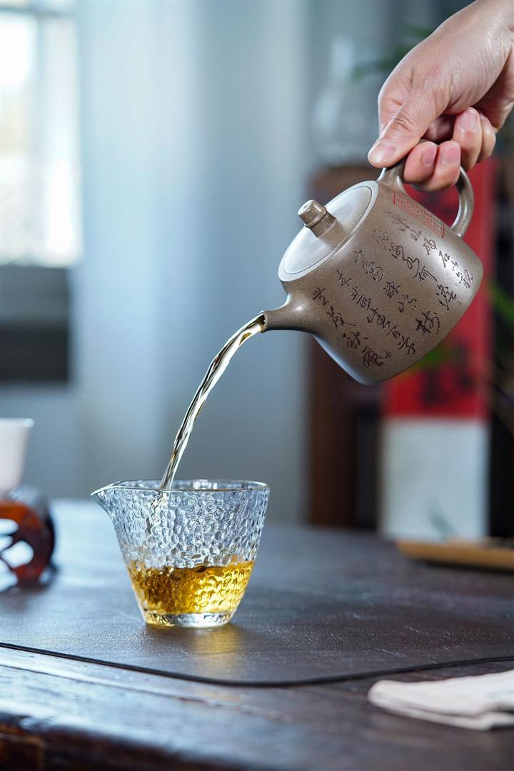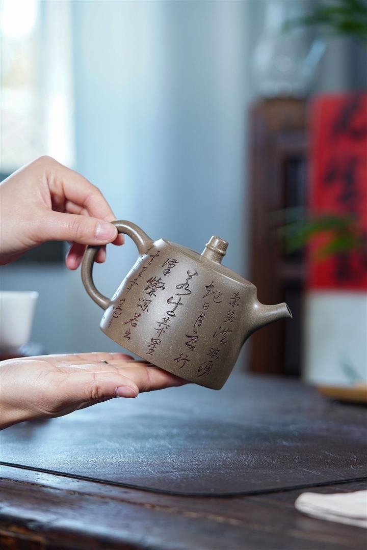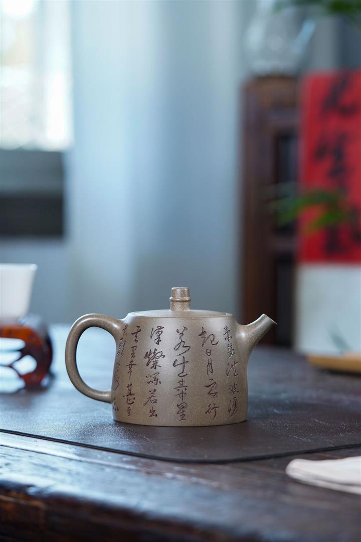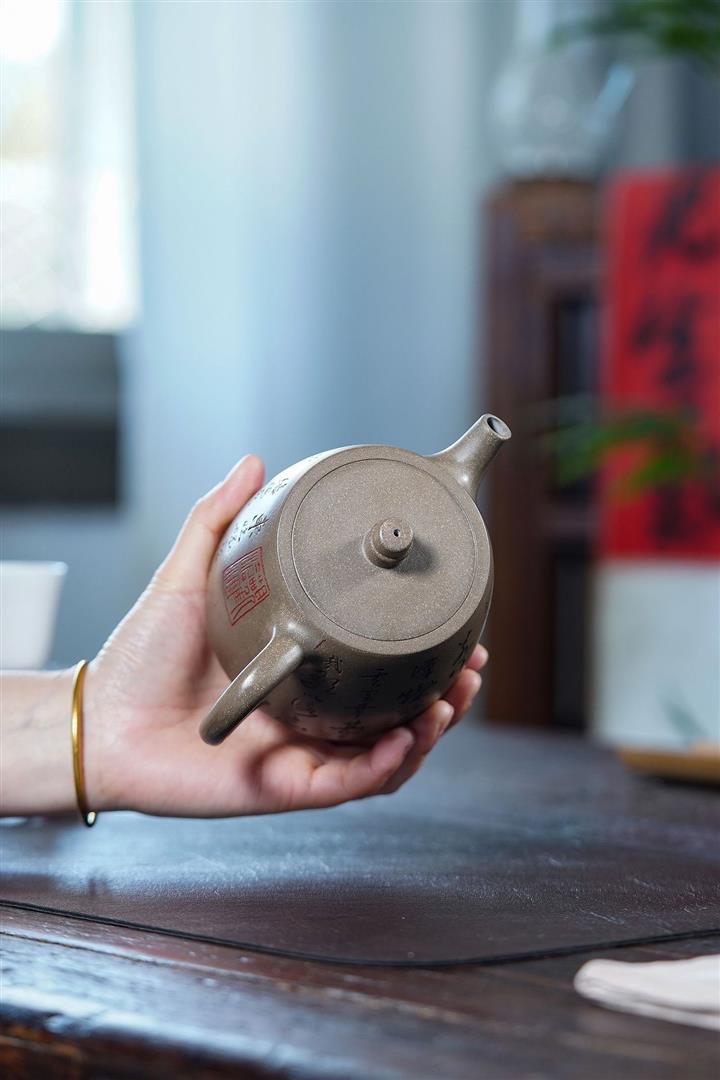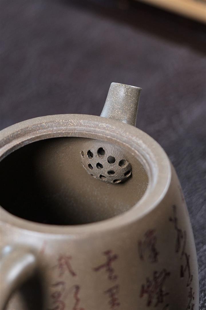 原礦龍骨金砂雙刀刻字炮嘴漢瓦茶壺POT6617