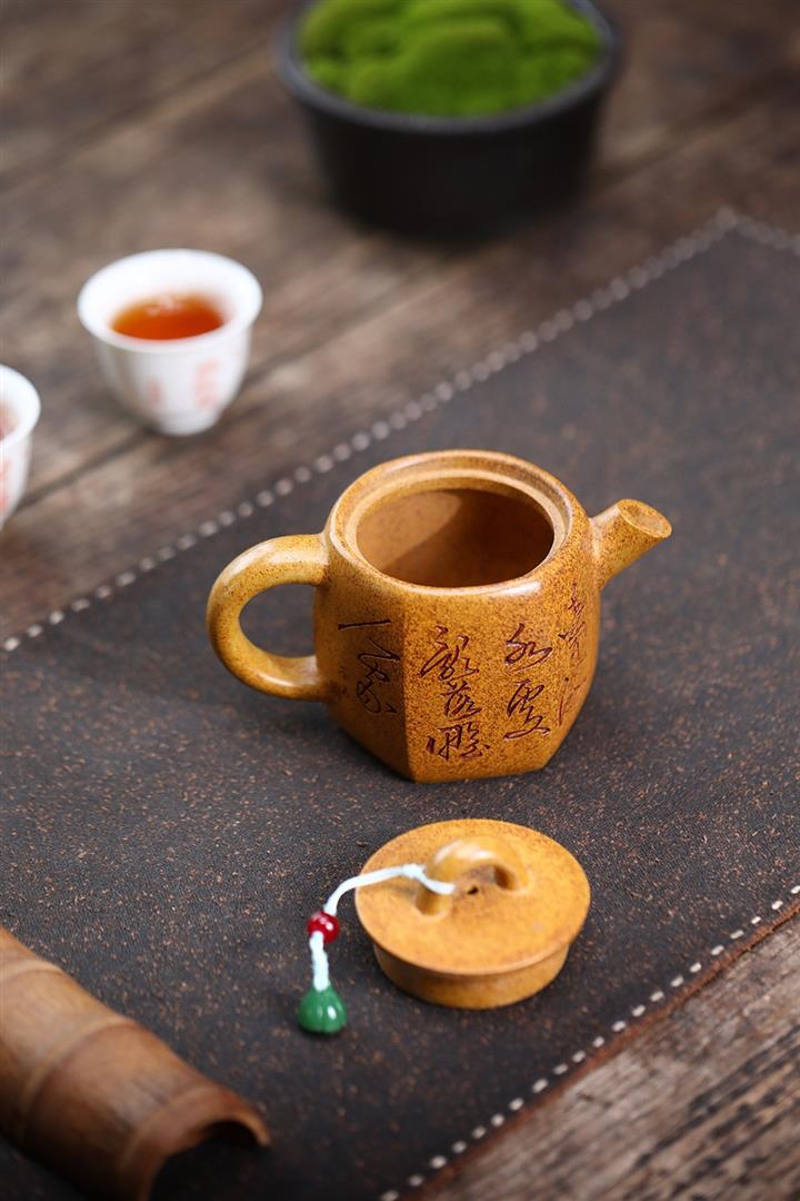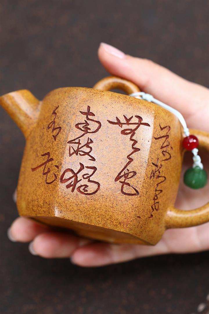 原礦龍骨金砂雙刀刻字炮嘴漢瓦茶壺POT6617
