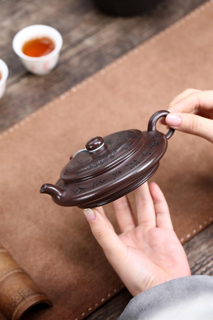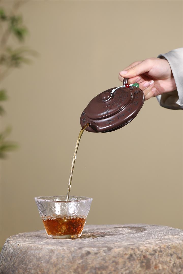 紫砂使用越久,壺身色澤越發光亮照人,氣韻溫雅。紫砂壺長久使用器身會因撫摸擦拭,變得越發溫潤光澤!