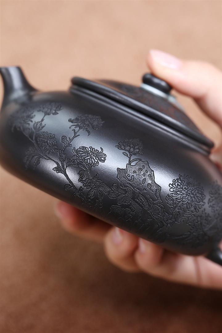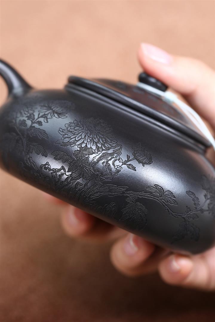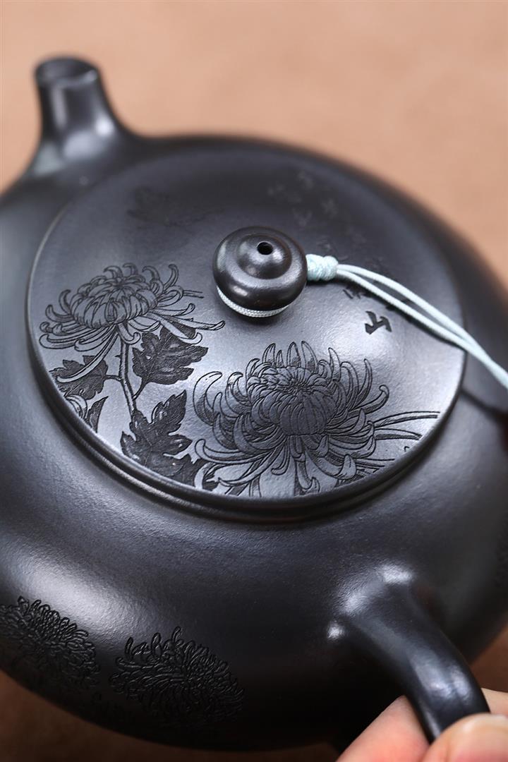 原礦養生石黃手工賞菊寒江茶壺POT6619