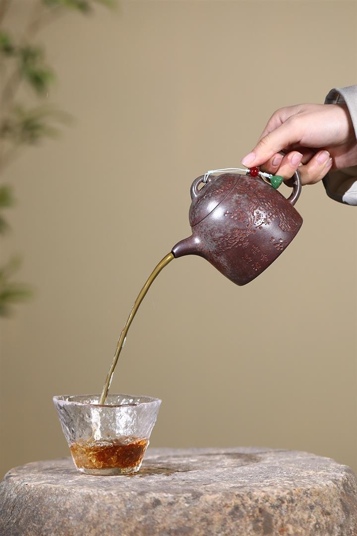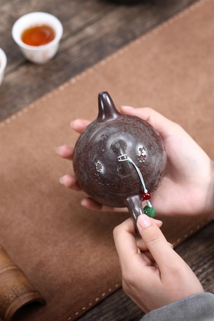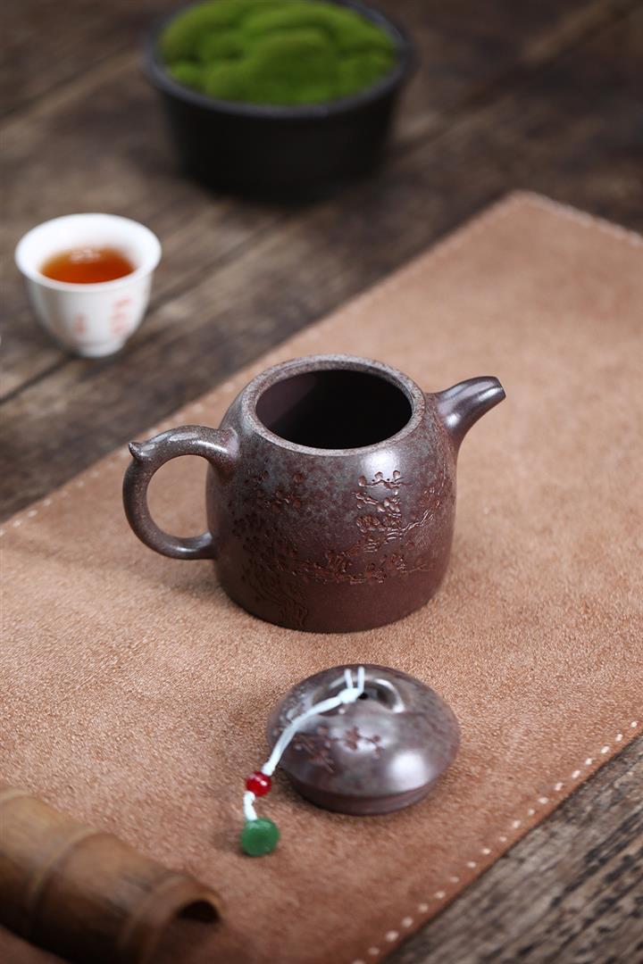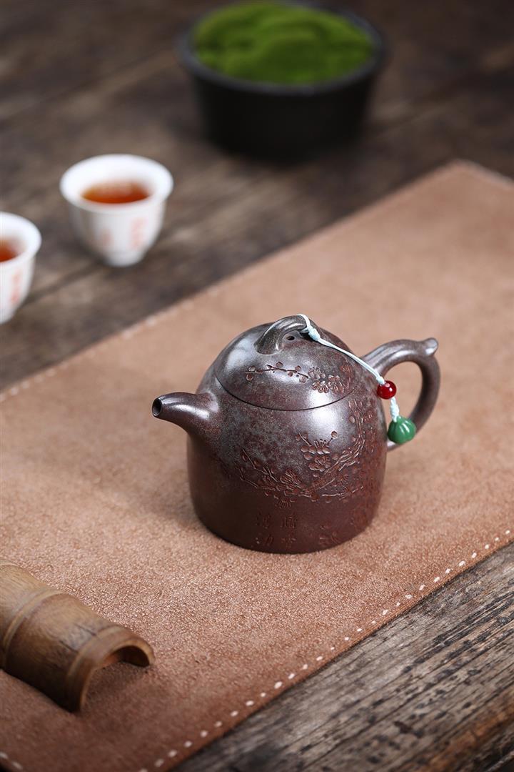 紫砂使用越久,壺身色澤越發光亮照人,氣韻溫雅。紫砂壺長久使用器身會因撫摸擦拭,變得越發溫潤光澤!
