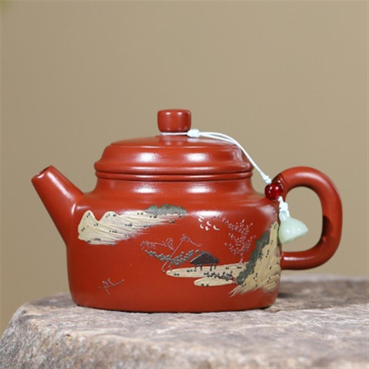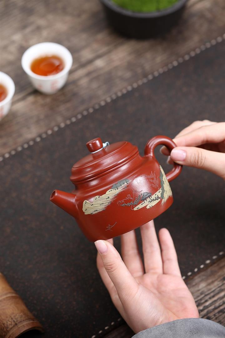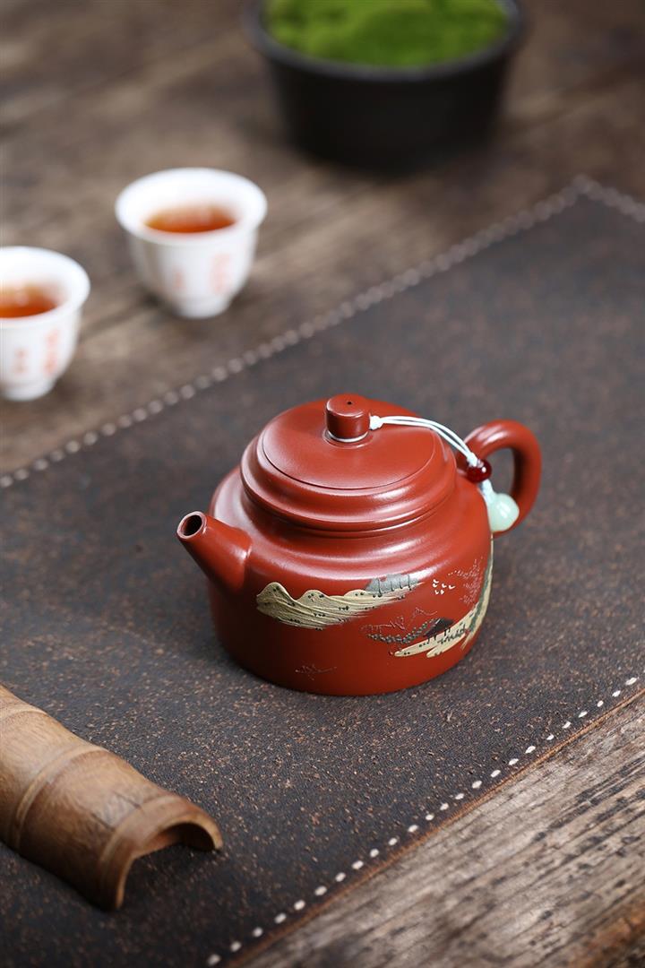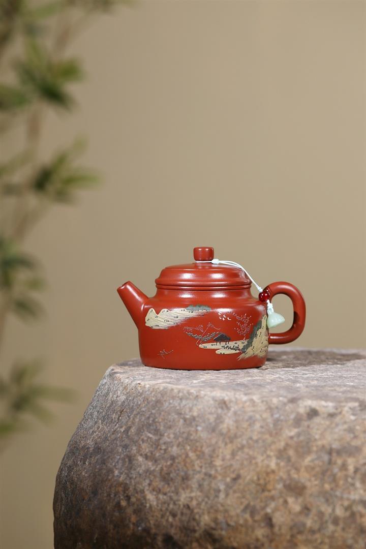原礦朱泥手工彩繪山水德鐘茶壺POT6626