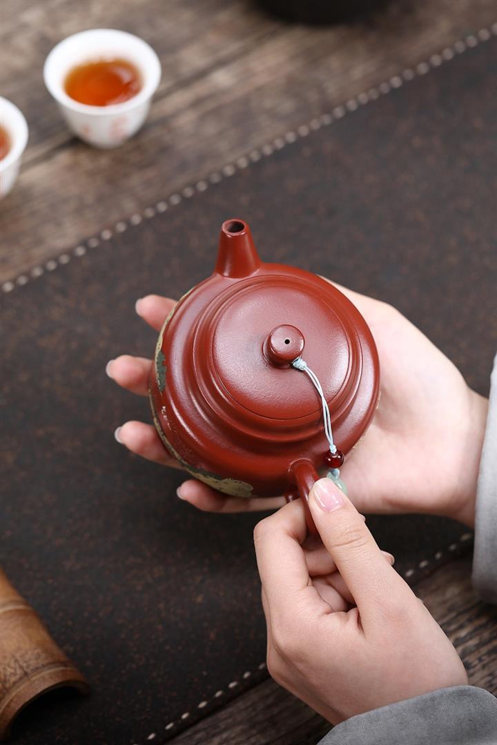 原礦赤金朱泥手工祥雲周盤茶壺POT6628