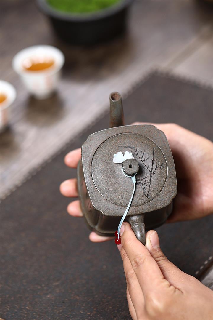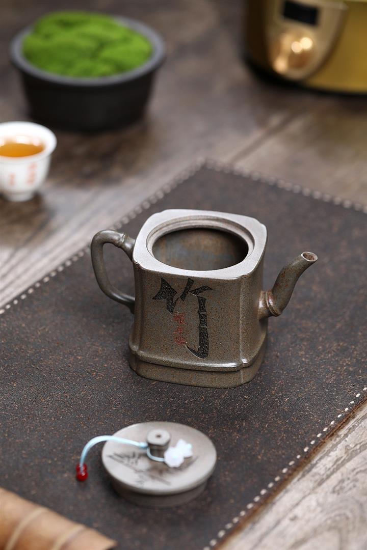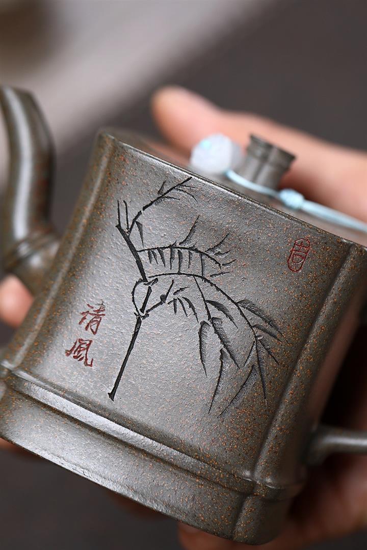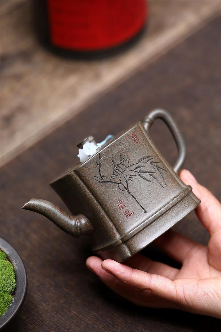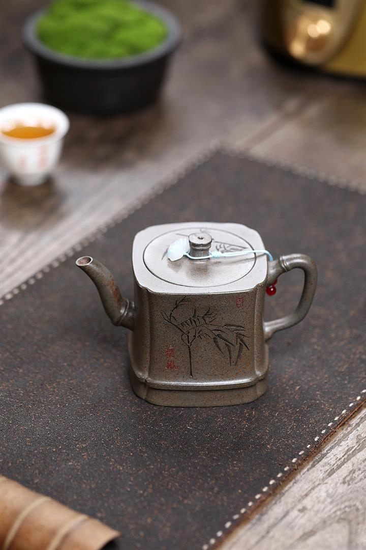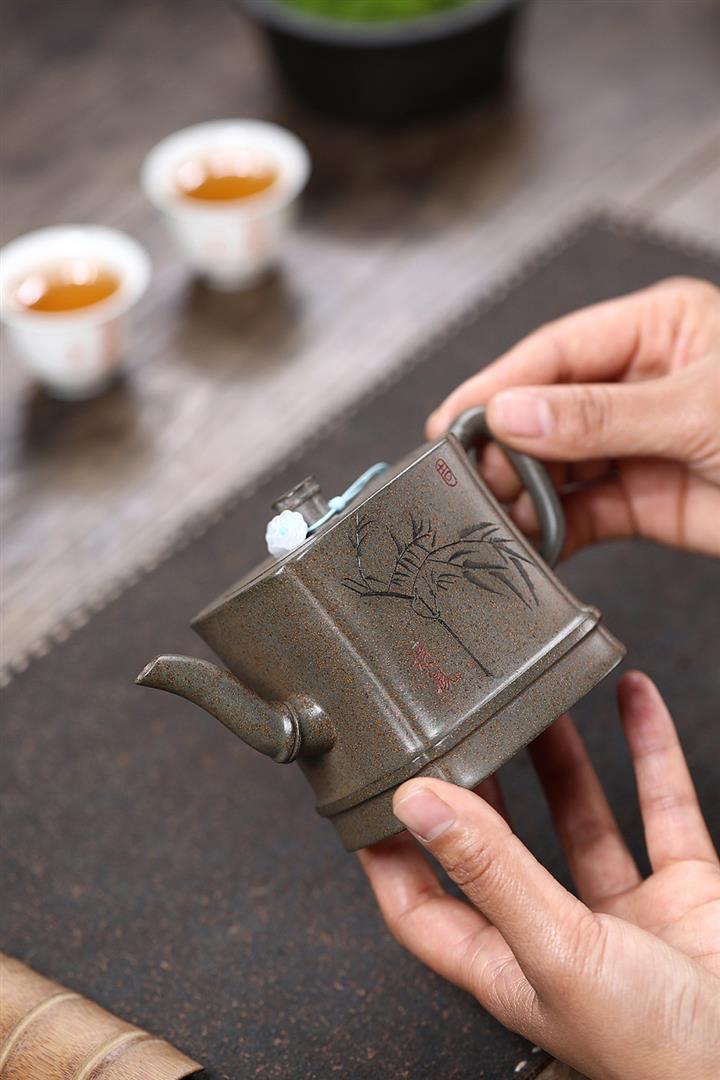原礦蟹殼青手工四方雅竹茶壺POT6630