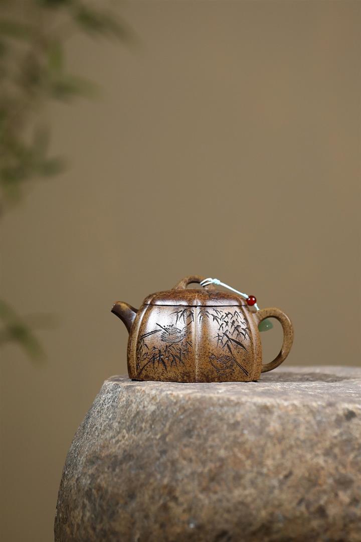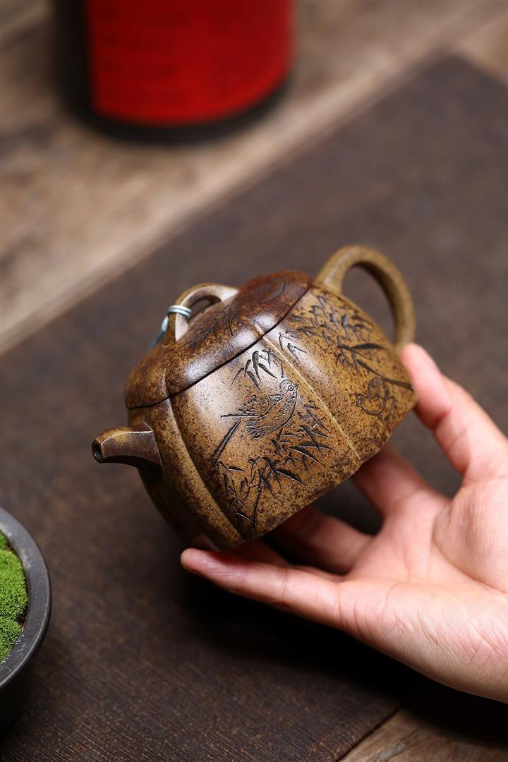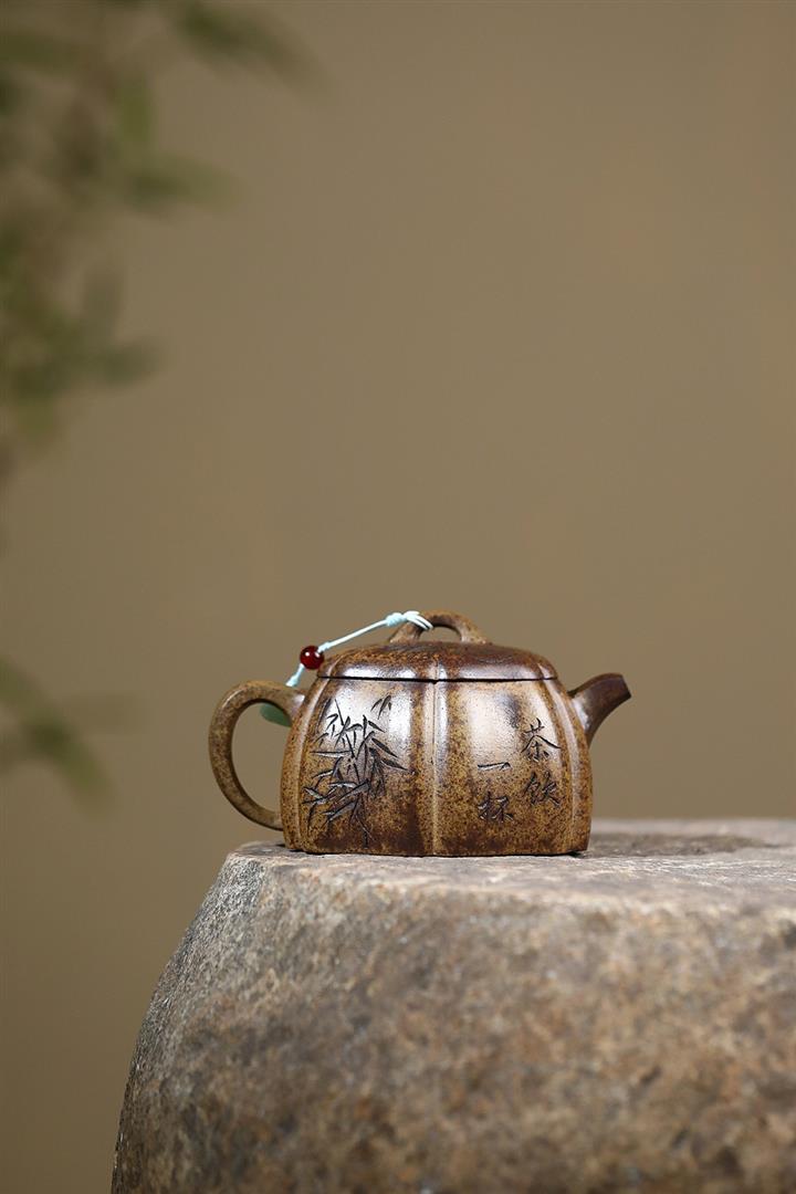 原礦龍骨金砂高溫柴燒手工竹鼓茶壺POT6638