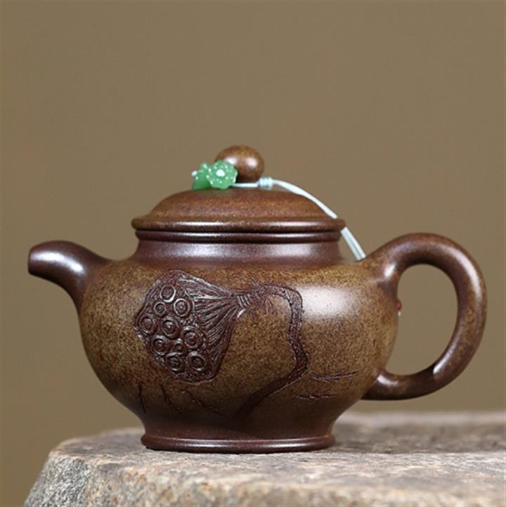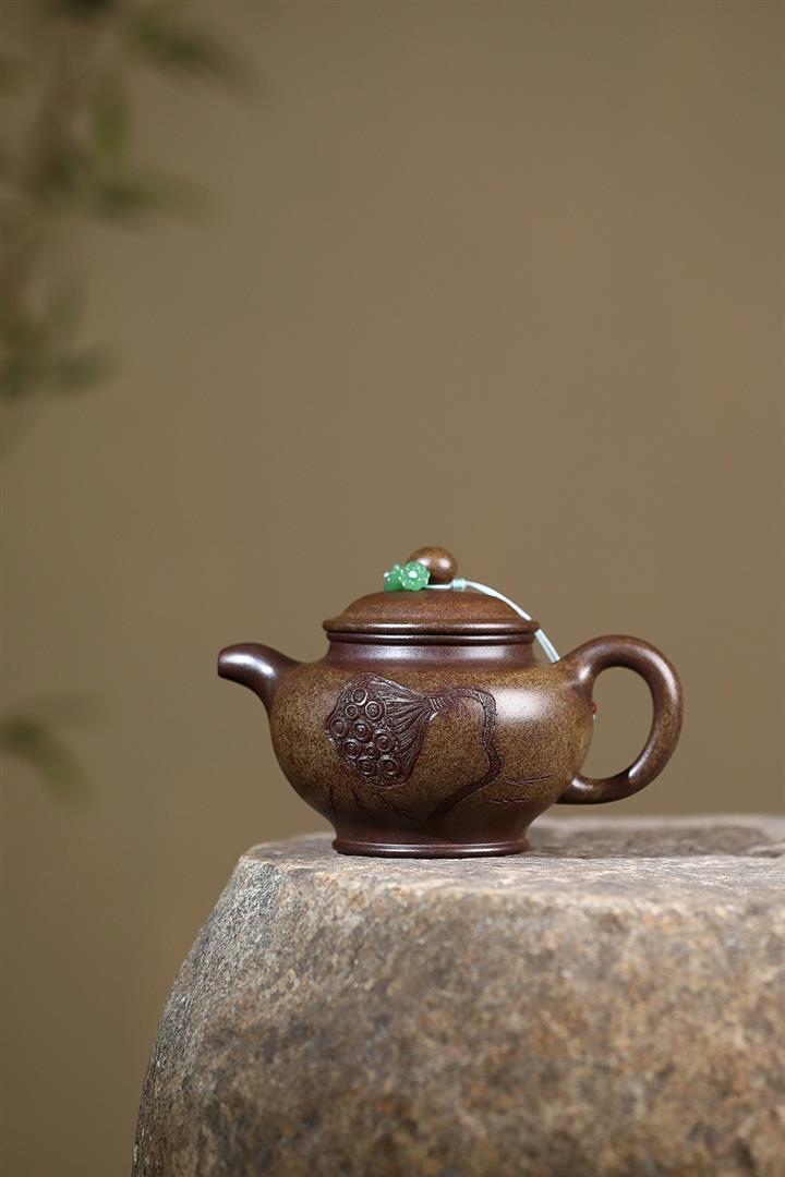 原礦降坡泥手工筋紋荷趣茶壺POT6646