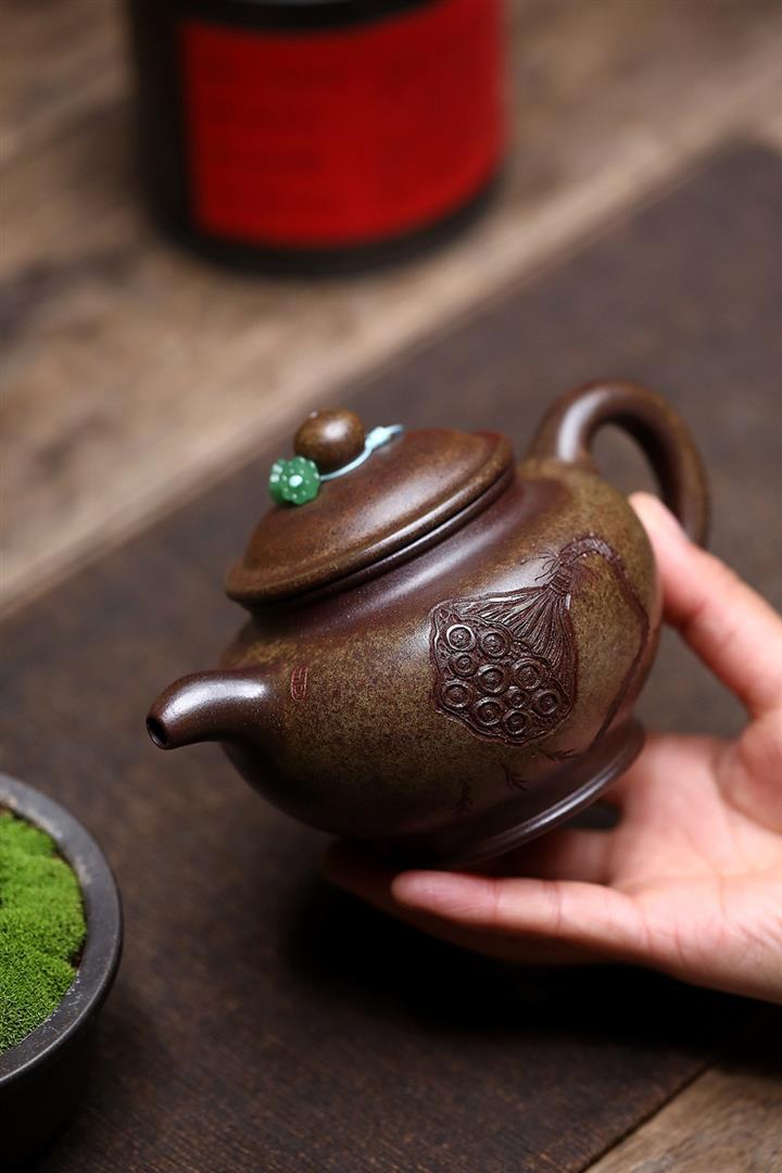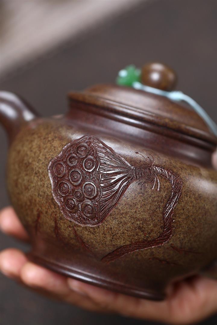 原礦紫玉金砂手工荷趣扁韻壺POT6643