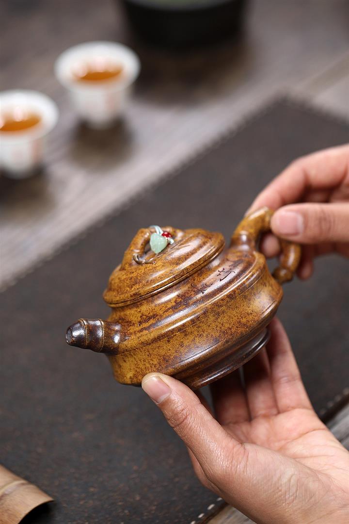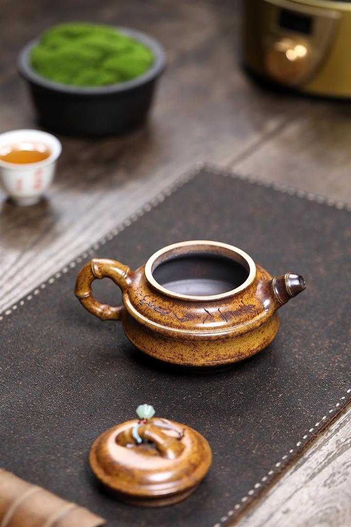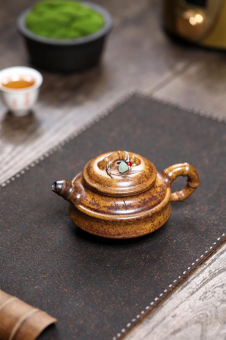原礦龍骨金砂高溫柴燒手工竹鼓茶壺POT6638